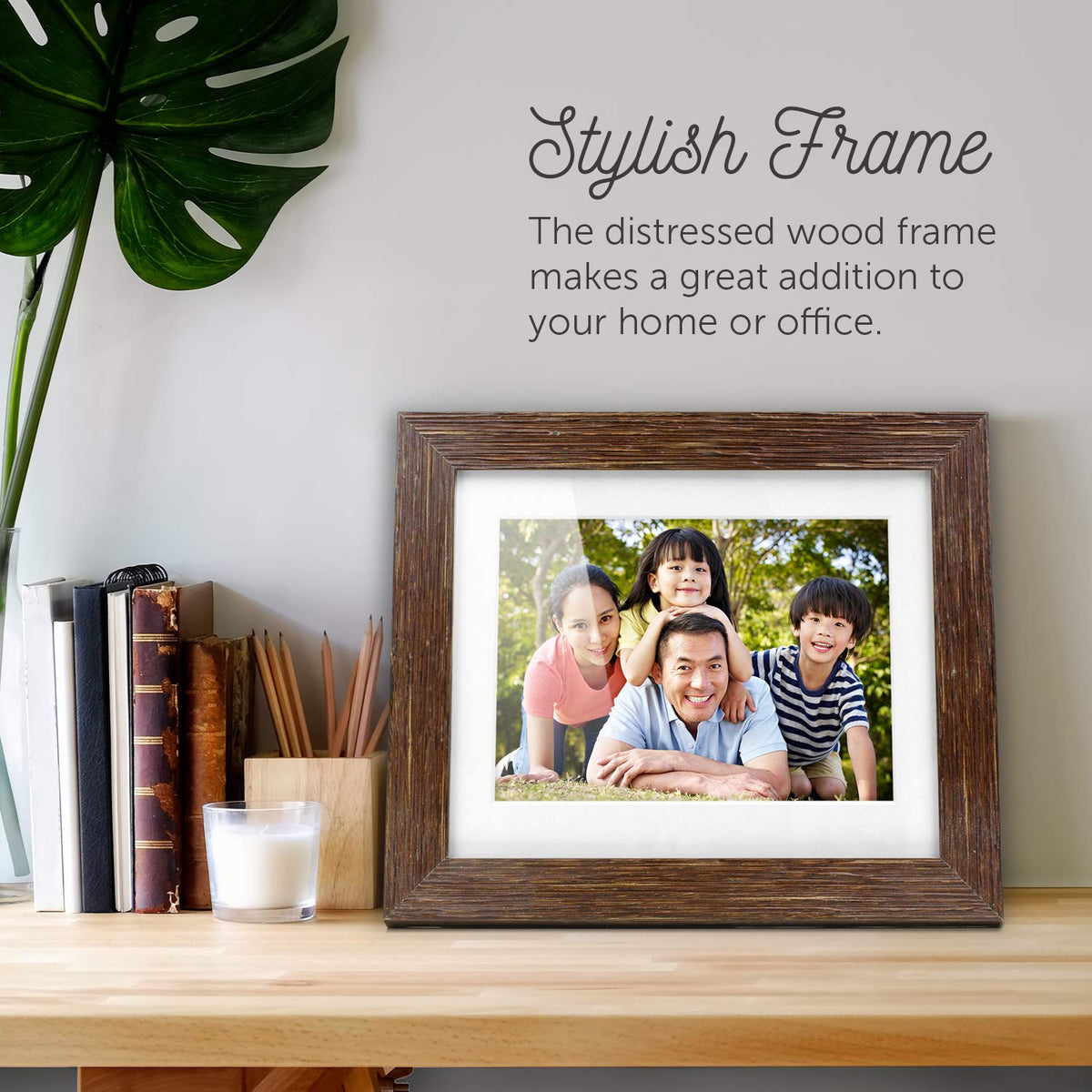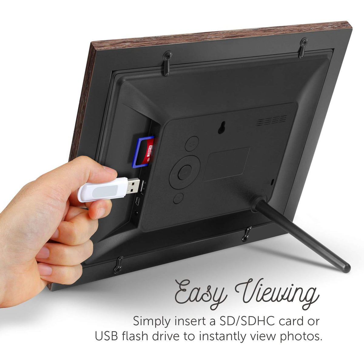 Aluratek 8 Distressed Wood Digital Photo Frame, Auto Slideshow, Usb/Sd/Sdhc Supported, Built In Clock & Calendar, Easy Setup,
