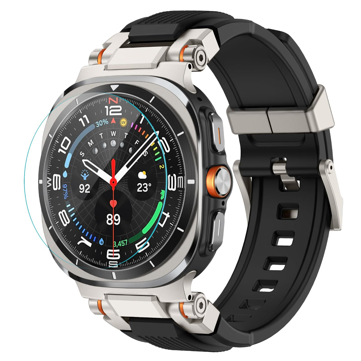 Amband For Samsung Galaxy Watch Ultra (2024) Bands For Men, Metal Connector Rugged Strap With Glass Screen Protector Compatible