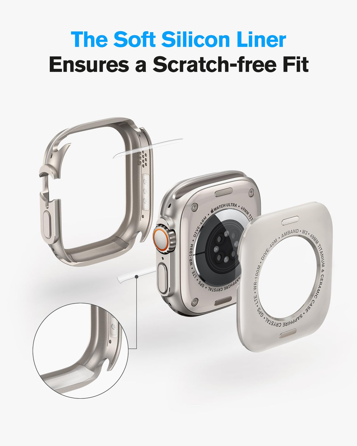 Amband For Apple Watch Ultra 2/1 Screen Protector 49Mm, W3 Metal Case Rugged Bumper Titanium Frame + 9H Tempered Glass Film + Ceramic-Like Back Cover For Iwatch 49 Mm, Keep Original, Waterproof, Natural Titanium