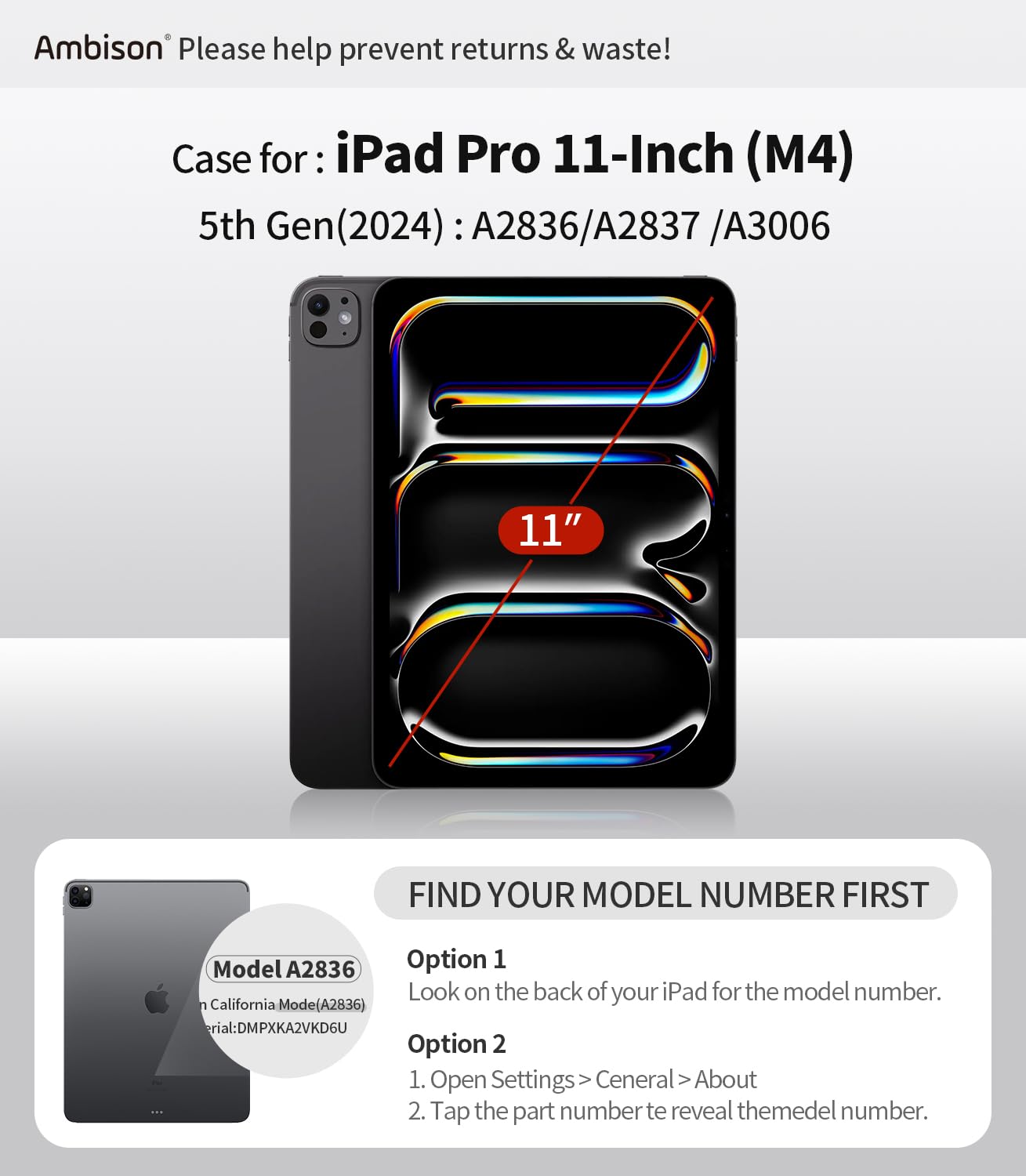 Ambison For Ipad Pro 11 Inch Case 2024(M4, 5Th Generation),With 9H Tempered Glass Screen Protector,Full-Body Heavy Duty Shockpro