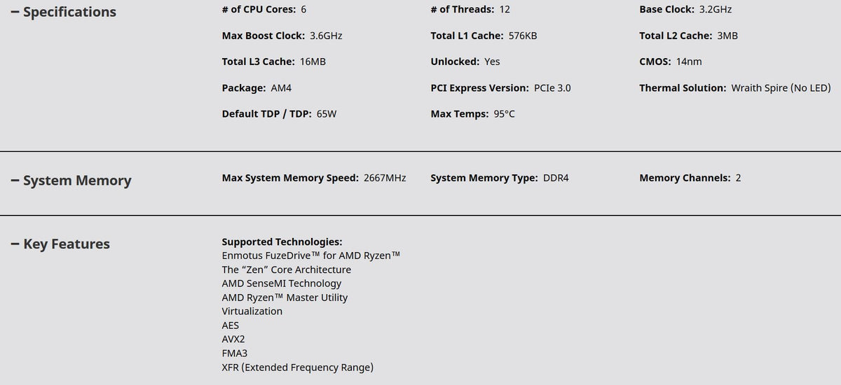 Amd Ryzen 5 1600 Processor With Wraith Spire Cooler (Yd1600Bbaebox)