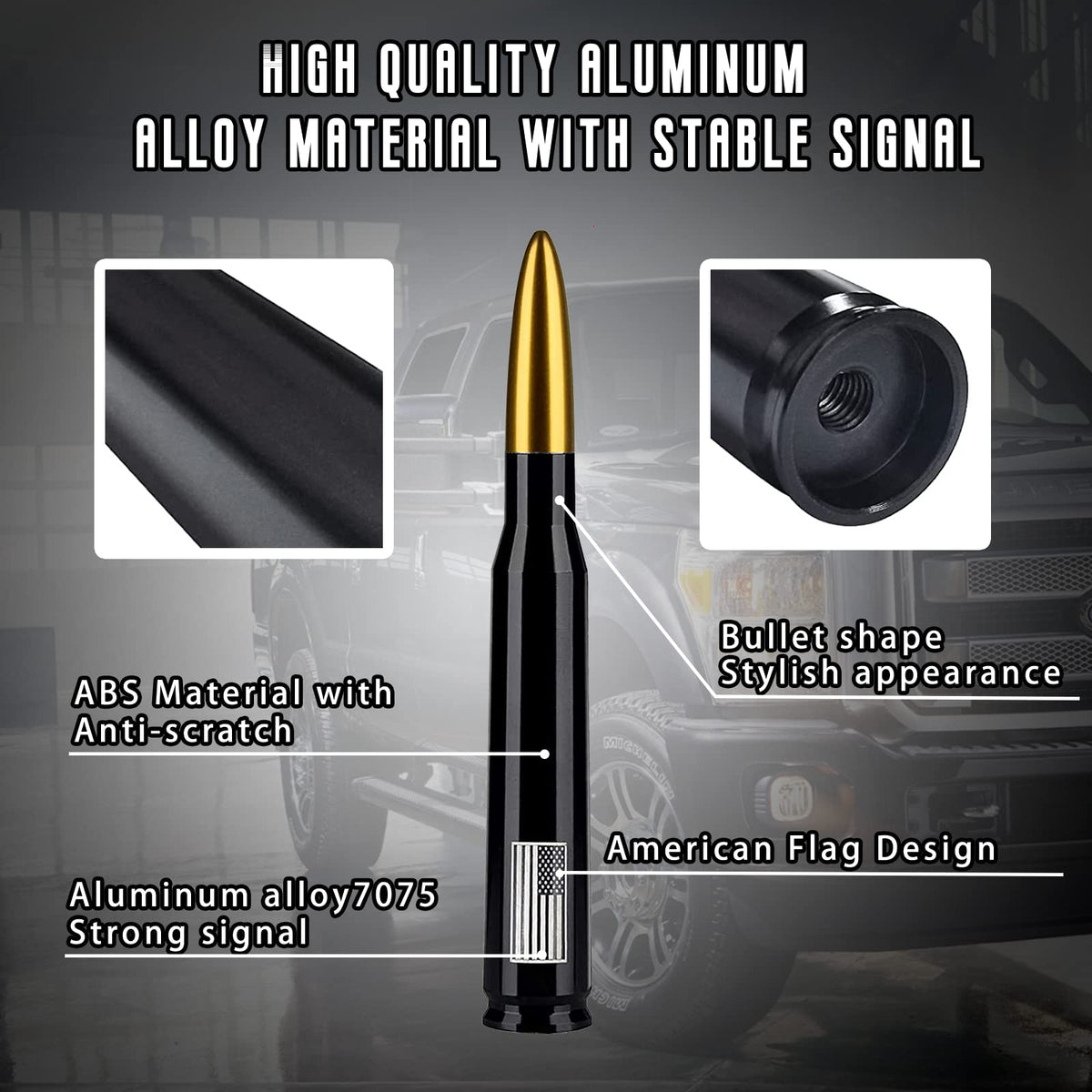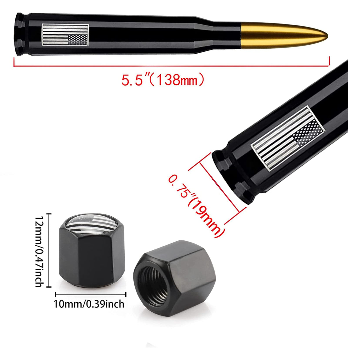 American Flag Design Car Truck Antenna Universal Fit Replacement Antenna For Car Truck Suv- Anti-Scratch Metallic Paint [Color: Silver/Gold/Black/Red/Blue] Brand: Hvsttpk Fit For: Ford F-Series (1990-2020), Ford Ranger (1990-2012), Ford Explorer (1990-2010); Dodge Ram Trucks (1994 - 2018), Dodge Dakota, Dodge Durango;(Not Compatible With 2001 Dodge Ram); Jeep Grand Cherokee (1993-2013), Jeep Cherokee (2014-2019); Toyota Tundra (2000-2020), Toyota Tacoma (1995-2015), Toyota Sienna (1998-2014), Toyota 4Runner (2010-2017), Toyota Fj Cruiser (2006-2014). Material: 50 Cal Round-Shaped Aluminum 5.5 Antenna Is Made Of High-Quality T-6061 Billet Aluminum Is Rust-Resistant With A Hard Anodized Finish To Ensure It Will Not Chip Or Fade Over Time;Comes With Scratch-Resistant Metallic Paint For Excellent Am/Fm Reception. Package Include: 1 * American Flag Antenna Adaptors 4 * American Flag Valve Stem Caps 2 * Rubber Rings. 9 * Antenna Screw Bolt Adaptors (Please Select The Correct One For Your Automobile).''