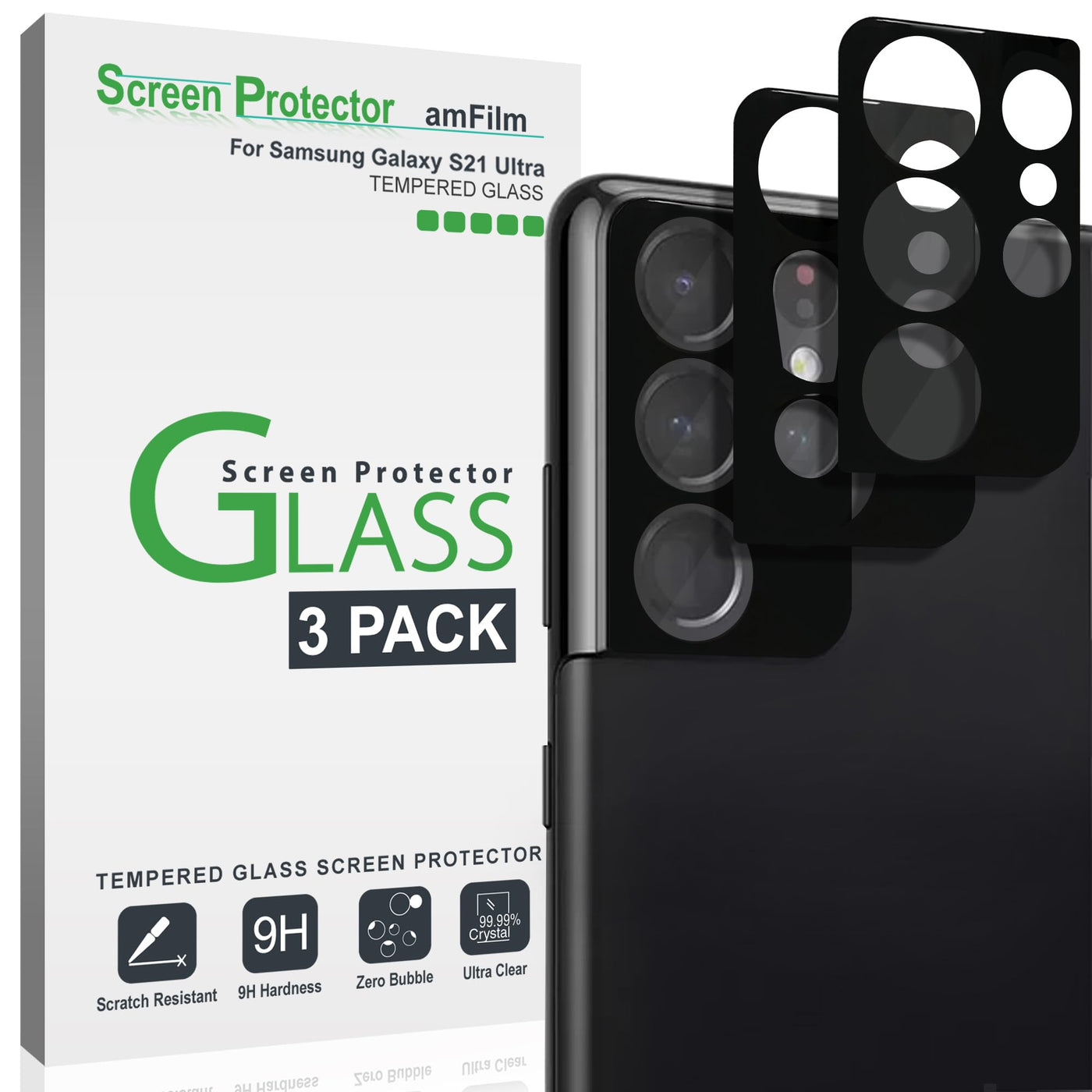 Amfilm (3 Pack) Camera Screen Protector For Samsung Galaxy S21 Ultra 5G 6.8 Inch, Tempered Glass Camera Lens Protector, No Flash
