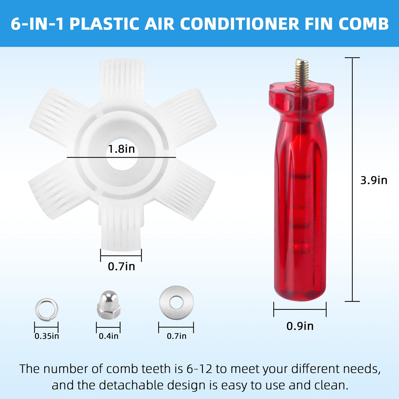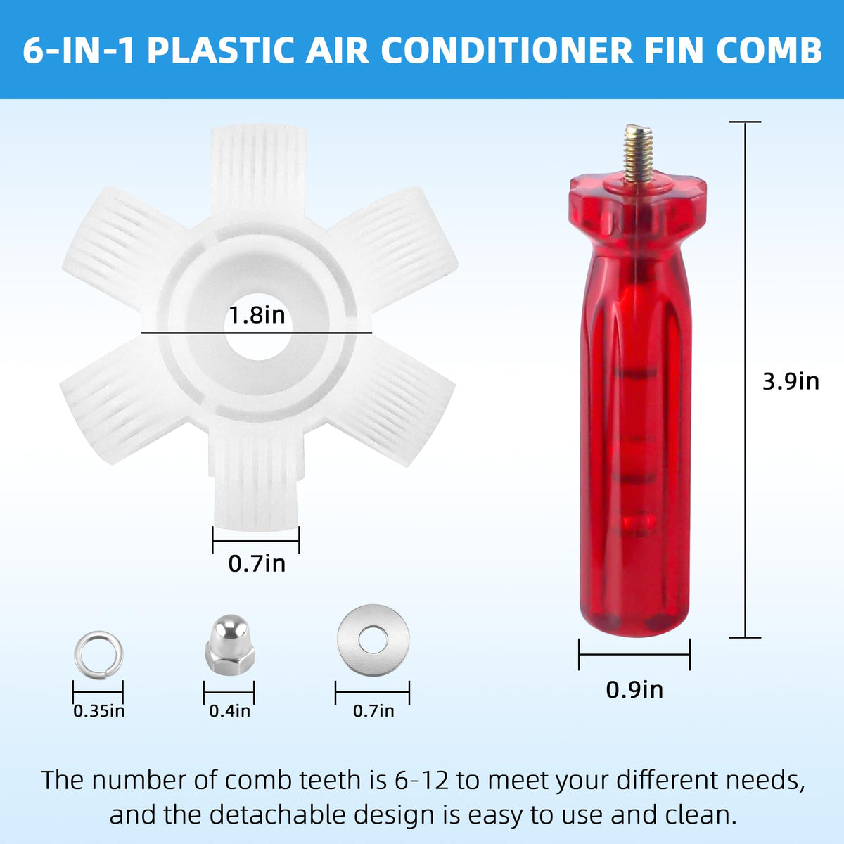 [Warm Tip]: Regularly Straightening And Cleaning Your Air Conditioner With Fin Straightener Tool Will Increase The Efficiency Of Your Air Conditioner. Fin Cleaning Kits Are Suitable For Condensers, Evaporators, Air Conditioners, Etc. Different Sizes Of Air Conditioner Fin Comb And Fin Cleaning Brush As A Combination Can Help You Solve The Problem At Once And Bring A Lot Of Convenience To Your Life | [Product Use]: Designed For Straightening Fins And Coils And Cleaning Evaporators And Condensers On Air Conditioners.Please Note: These Might Not Work On Modern Radiators That Have Lots Of Horizontal Pieces And Very Fine Radiator Fins | [Package Included]: 1 X Fcr6 Ring Fin Comb, 1 X 6-In-1 Plastic Air Conditioner Fin Comb, 1 X Stainless Steel Radiator Fin Comb | [Fcr6 Ring Fin Comb]:Fcr6 Fin Comb Set For Air Conditioner (Available In 12 Different Sizes To Meet Your Different Needs, 6 Different Colors, Easy To Identify And Organize, Easy To Use), ??Red:18 And 20 Fins Per Inch;??Lime:16 And 17 Fins Per Inch;??Green:12 And 14 Fins Per Inch;??Blue:11 And 13 Fins Per Inch;??Yellow:9 And 15 Fins Per Inch;??Orange:8 And 10 Fins Per Inch | [Fin Comb]:Stainless Steel Fin Comb Teeth Are Approximately 2-9/25 Inches Deep, Rugged And Adjustable For Looseness And Tightness So As Not To Damage The Coils.6-In-1 Plastics Fin Comb Teeth Are Approximately 1/4 Inch Deep, It Has 6 Sided Heads 8,9,10,12,14 And 15 Fins Per Inch. The Fin Comb Fixes Bent Fins And Is Easy To Use, Simply Pass The Tool Through The Area On The Air Conditioning Unit Where The Fin Is Bent | [Buy With Confidence]: The Air Conditioner Fin Comb Supports 365 Days Return And Exchange,We Have A Professional After-Sales Service Team, If You Have Any Question About This Fin Comb Set, Please Feel Free To Contact Us Through Amazon Email Or Question And Answers, We Will Solve Your Problem Within 24 Hours. Don
