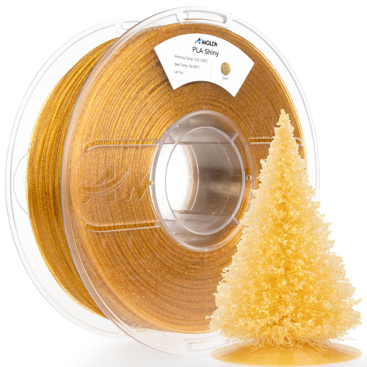 Q: Is the AMOLEN PLA filament suitable for detailed prints like Christmas decorations?A: Yes, the AMOLEN Glitter Shiny PLA filament is ideal for detailed prints such as Christmas decorations due to its shiny gold finish and sparkling appearance that enhances visual appeal.