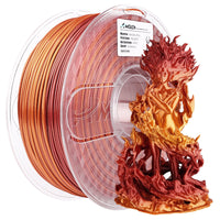Q: What makes AMOLEN PLA filament different from regular PLA filaments?A: AMOLEN PLA filament features a stunning gradient silk design, combining silk gold and shiny red colors that create amazing multicolor 3D prints, setting it apart from standard PLA filaments.