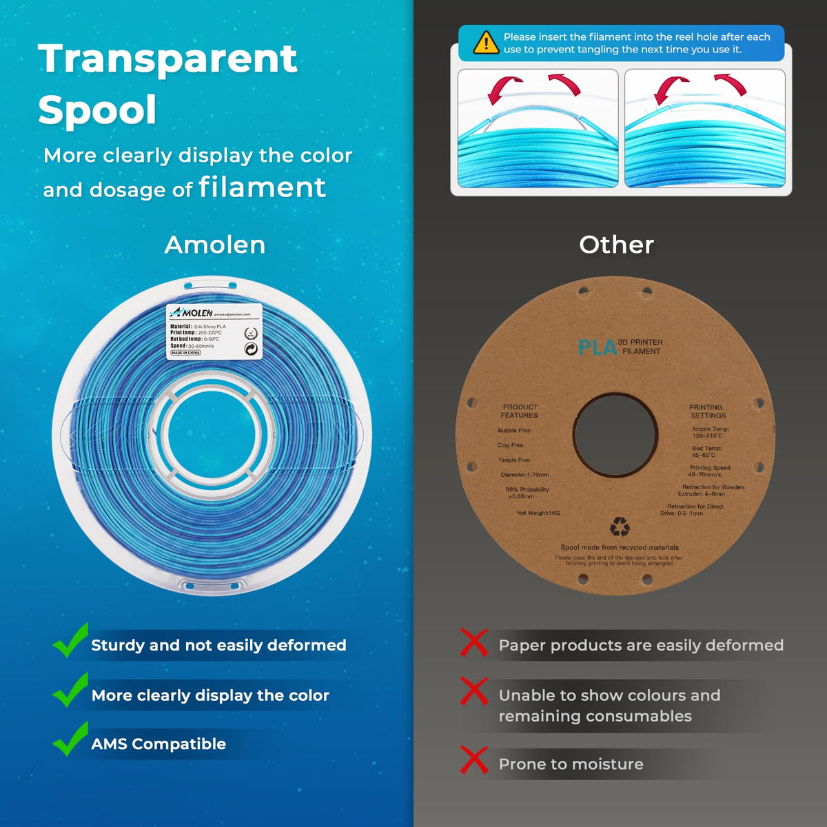 Q: How should I store my AMOLEN PLA filament to maintain its quality?A: To maintain the quality of AMOLEN PLA filament, store it in a cool, dry place away from direct sunlight and humidity.