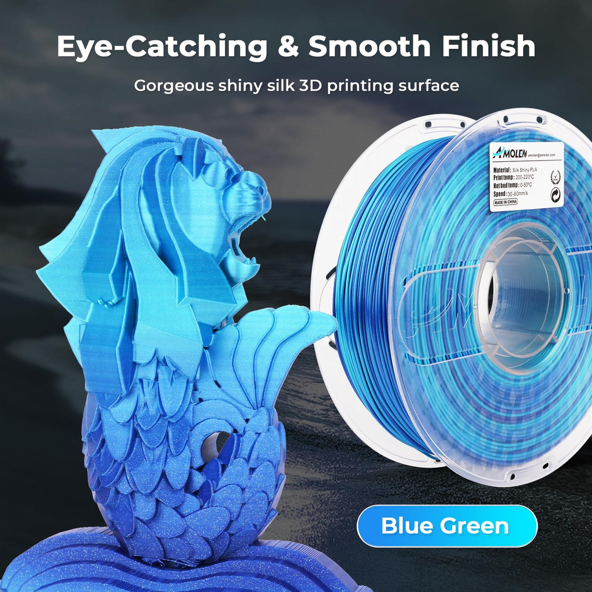Specifications Material: Silk Shiny Pla Color: Silk Green Shiny Blue Weight: 1Kg (2.2 Lb) Diameter: 1.75Mm Dimensional Accuracy: +/-0.03 Mm Printing Setting Printing Temperature: 190-220? Printing Speed: 30-60Mm/S Hot Bed: 0-50? Note: Because Of Shooting Light Or Display Resolution, There Are A Little Color Shading Between The Pictures And Filaments. There Is A Little Difference Between Different Batches, So That It Is Recommended To Buy Enough Filament At One Time.