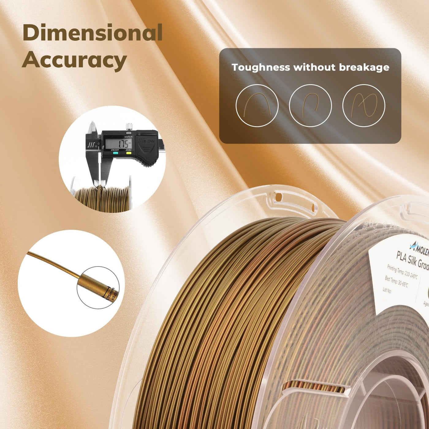 Amolen Pla Filament 1.75Mm,Silk Pla Aged Brass Gradient, 3D Printer Filament 1.75Mm For 3D Printing Dimensional Accuracy 0.02Mm For Most 3D Printer 1Kg(2.2Lbs) *Transparent Spool Shows More Color Of The 1.75Mm Pla Filament & Pla Consumption. Sealed Vacuum Bags To Keep The 3D Filament Dry And Keep Out Dust, Much Smoother And More Stable. Specifications: Material: Silk Pla 1.75Mm Color: Aged Brass Weight: 1Kg(2.2Lb) Diameter: 1.75Mm Dimensional Accuracy: +/- 0.02 Mm Printing Temperature: 200-220? Printing Bed: 30-60? Note: Keep The Silk Pla Filament As Vertical As Possible Without Twisting It. Because Of Shooting Light Or Display Resolution, There Is Little Color Shading Between The Pictures And Filaments. There Is A Little Difference Between Different Batches, So It Is Recommended To Buy Enough Filament At One Time.''