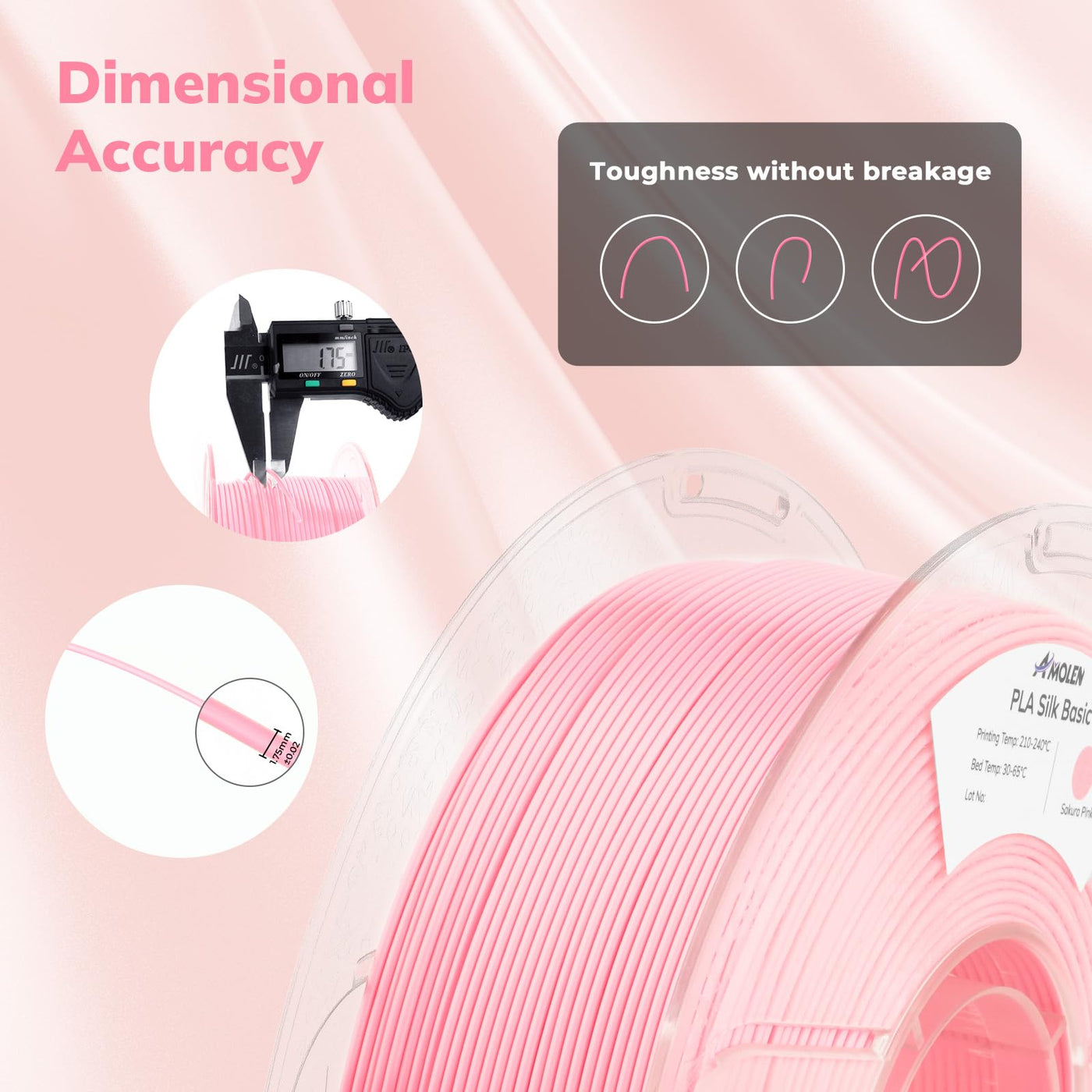 Amolen Pla Filament 1.75Mm Silk Shiny Sakura Pink, 3D Printer Filament 1.75Mm For 3D Printing 1Kg(2.2Lbs) Spool, Compatible With Most Fdm Printer *Transparent Spool Shows More Color Of The 1.75Mm Pla Filament & Pla Consumption. Sealed Vacuum Bags To Keep The 3D Filament Dry And Keep Out Dust, Much Smoother And More Stable. Specifications: Material: Silk Pla 1.75Mm Color: Sakura Pink Weight: 1Kg(2.2Lbs) Diameter: 1.75Mm Dimensional Accuracy: +/- 0.02 Mm Printing Temperature: 200-220? Printing Bed: 30-65? Note: Keep The Silk Pla Filament As Vertical As Possible Without Twisting It. Because Of Shooting Light Or Display Resolution, There Is Little Color Shading Between The Pictures And Filaments. There Is A Little Difference Between Different Batches, So It Is Recommended To Buy Enough Filament At One Time.