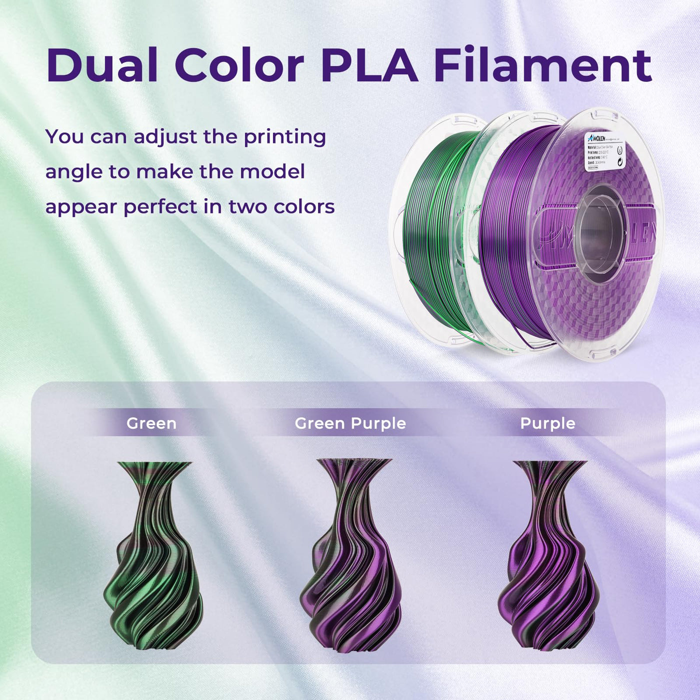 Amolen Silk Pla 3D Printer Filament, Dual Color Purple Green Pla 1.75Mm, Shiny Color Change Filament 3D Printing Pla Filament Fo