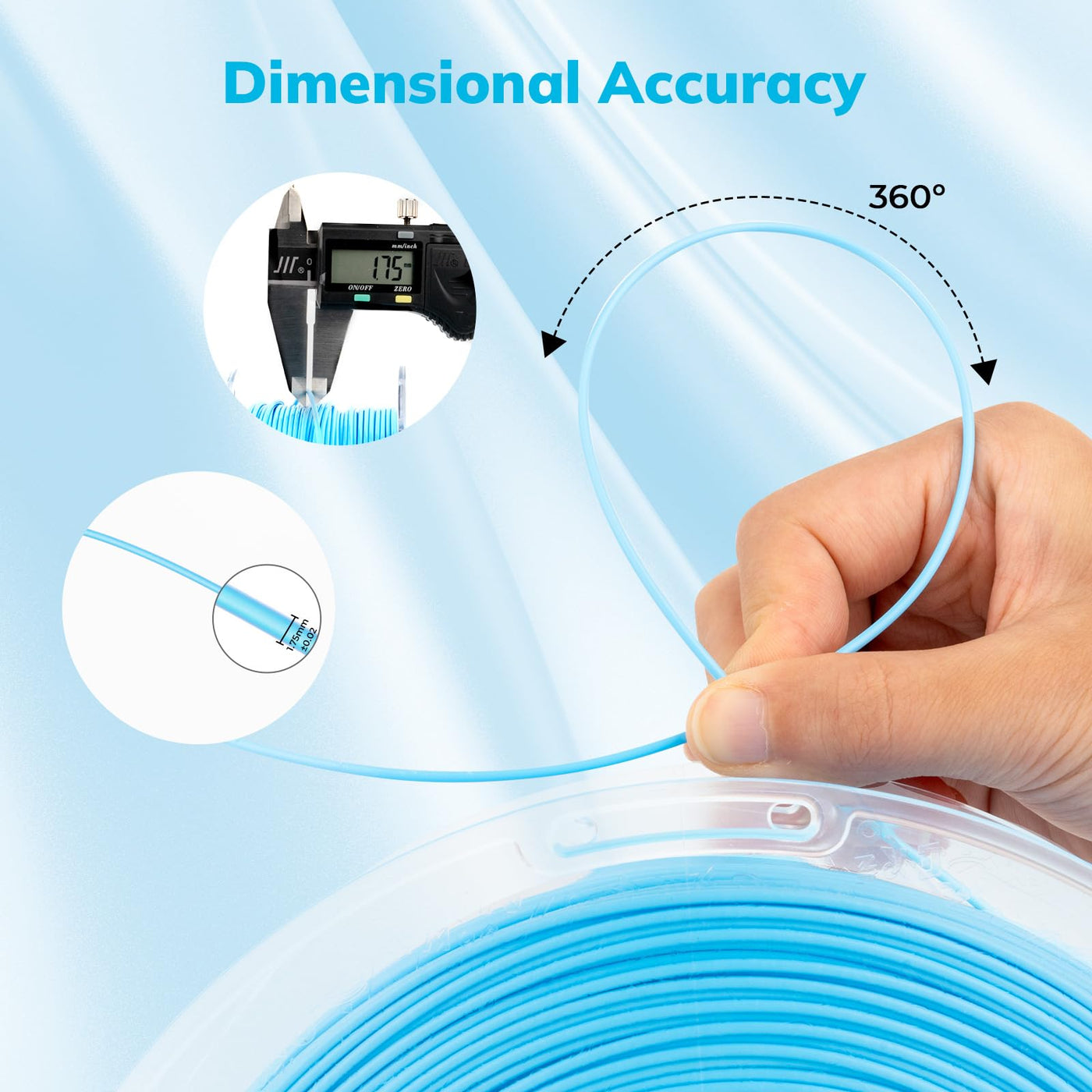 Q: What is the dimensional accuracy of AMOLEN Silk PLA filament?A: AMOLEN Silk PLA filament has a dimensional accuracy of +/- 0.02 mm, ensuring that your prints are precise and consistent.