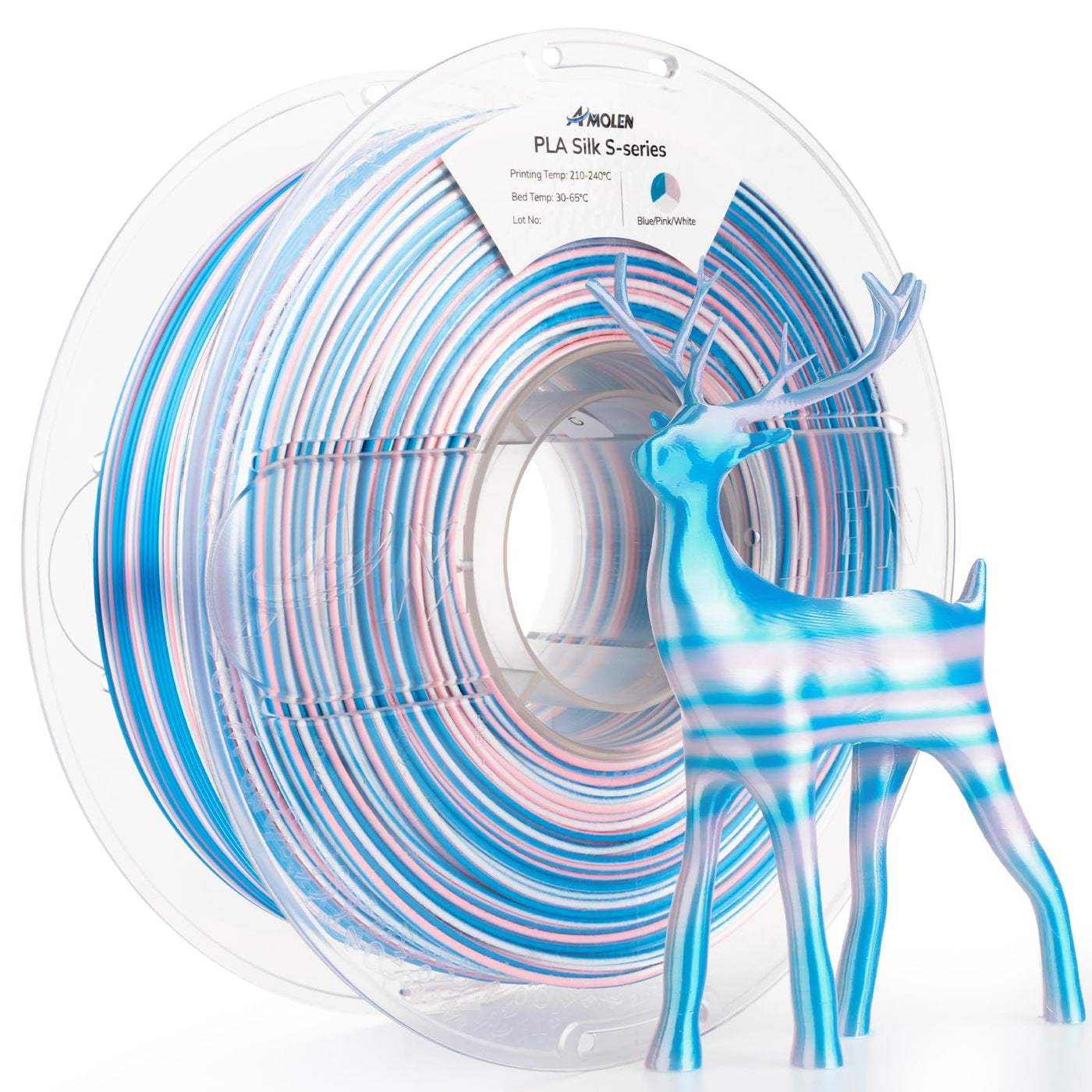 Amolen Silk Pla 3D Printer Filament, Shiny Multicolor Rainbow Pla Filament 1.75Mm, Fast Color Change Pla 3D Printing Filament For Most Fdm 3D Printer, Blue Pink White, 1Kg (2.2Lbs) Specifications: Material: Silk Pla 1.75Mm Color: Blue Pink White Weight: 1Kg (2.2 Lb) Diameter: 1.75Mm Dimensional Accuracy: +/- 0.02 Mm Printing Temperature 210-240? Printing Bed 30-65? Note: Keep The Silk Pla Filament As Vertical As Possible Without Twisting It. Because Of Shooting Light Or Display Resolution, There Is Little Color Shading Between The Pictures And Filaments. There Is A Little Difference Between Different Batches, So It Is Recommended To Buy Enough Filament At One Time.