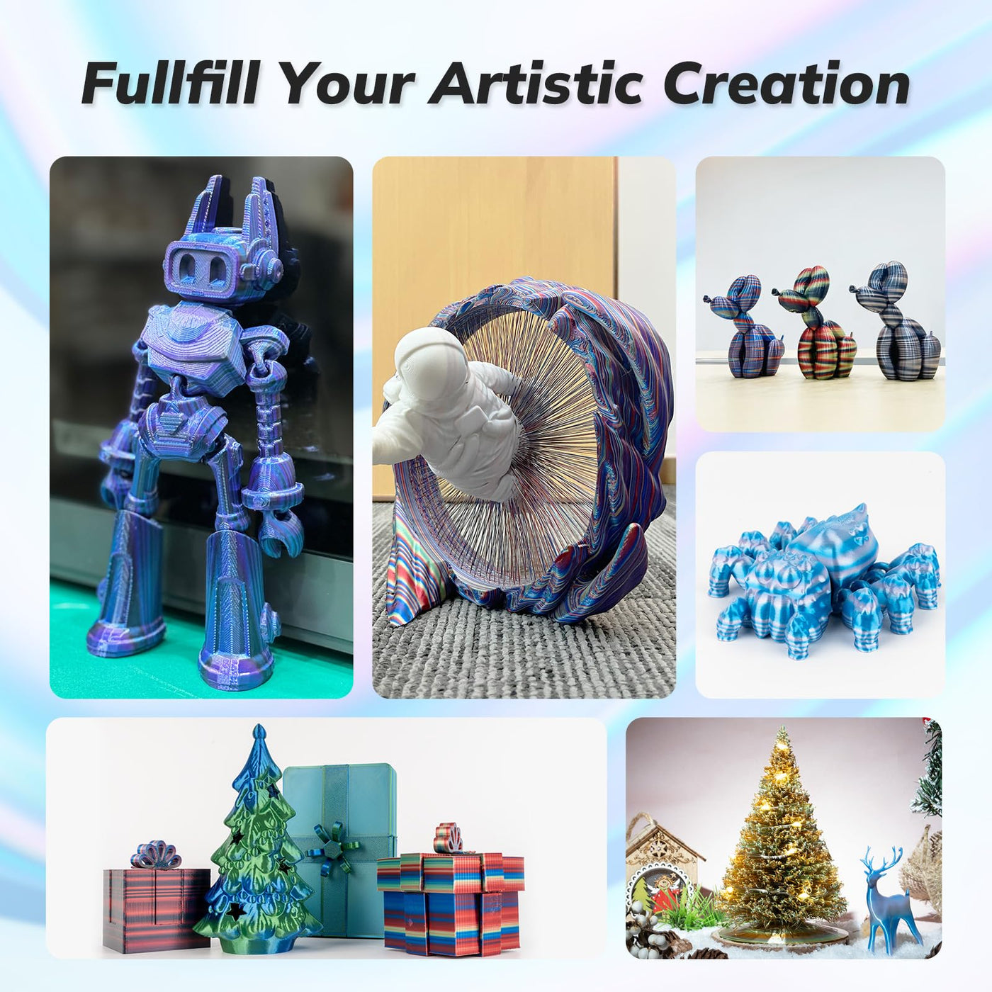 Q: What makes AMOLEN Silk PLA different from standard PLA?A: AMOLEN Silk PLA features a unique silky texture and vibrant multicolor appearance, providing stunning glossy finishes and smooth surfaces that set it apart from standard PLA filaments.