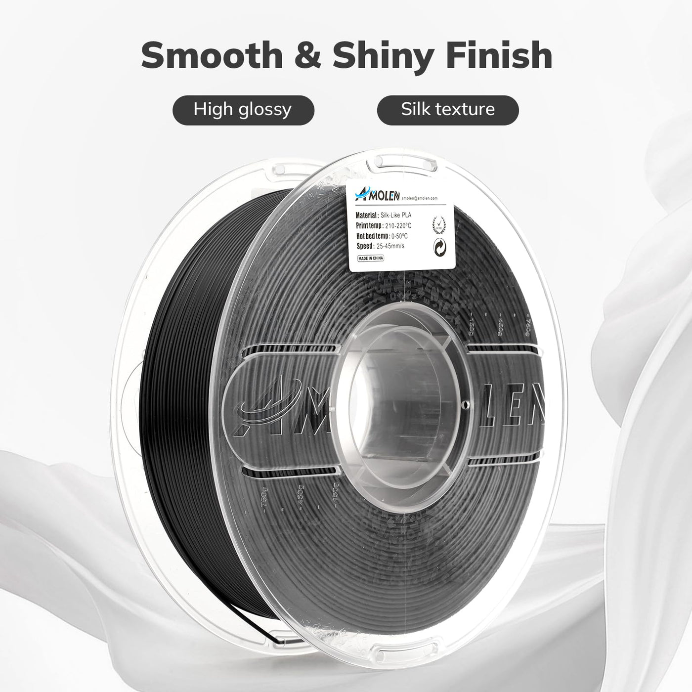 Amolen Silk Pla 3D Printer Filament, Shiny Silk Black Pla Filament 1.75Mm, 3D Printing Pla Filament For Most 3D Printer, 1Kg Spo