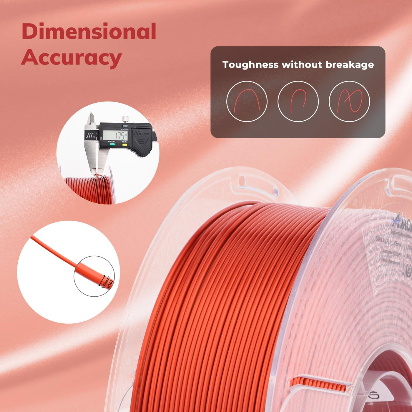 Q: What is the dimensional accuracy of AMOLEN Silk PLA filament?A: AMOLEN Silk PLA filament has a stringent dimensional accuracy of +/- 0.02 mm, ensuring consistent and high-quality prints.