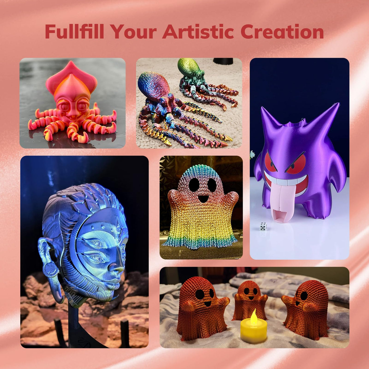 Q: What are the benefits of using AMOLEN Silk PLA filament for 3D printing?A: AMOLEN Silk PLA filament provides a smooth and shiny finish, making it ideal for decorative objects and crafts. It also features excellent mechanical properties like strong toughness and low jamming, ensuring a smooth printing experience.