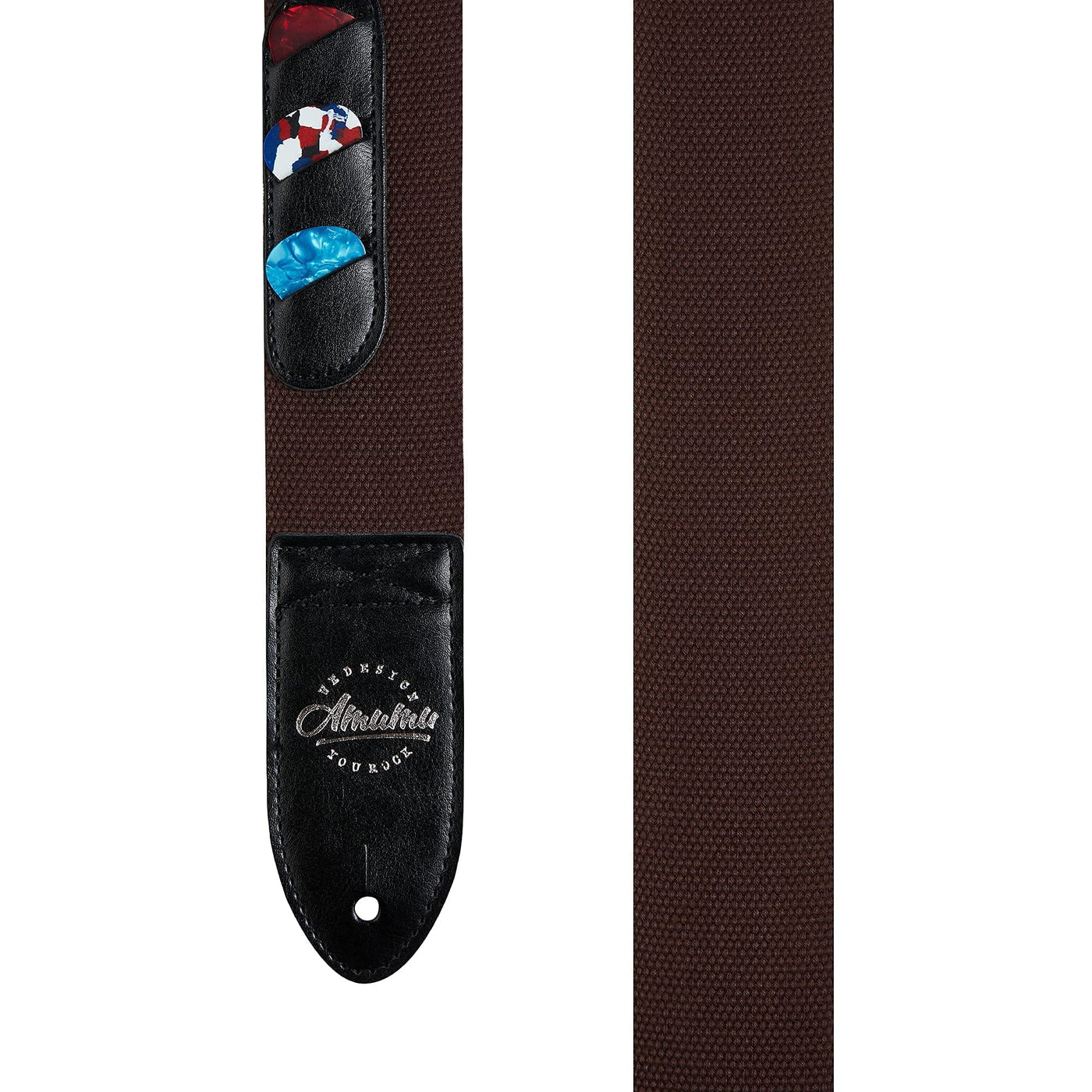 Amumu Guitar Strap Soft Cotton With 3 Pick Holders For Electric, Acoustic, Bass Guitar Brown