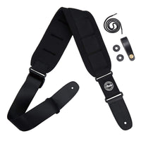 This Thick Guitar Strap Is Made From Thick Sbr Memory Foam, Providing Extra Comfort On Your Neck, While The Thick Foam Allows You To Play Or Practice Heavy Guitars For Hours, Adjustable Length From 44 To 57 Inches. It Comes With A Lace For Your Acoustic Guitar. Feature: Soft And Thick Sbr Foam Rubber Plus Rubber Band Material Made Provides Maximum Comfort For Standing Situations Strong And Secure Leather Ends The Strap Measures A Comfortable 3.3'' Wide, 0.4'' Thick. The Length Is Adjustable From 44'' To 57''. Specifications: Material : Sbr Memory Foam, Rubber Band, Nylon Width : 3.3'' Min Length : 44'' Max Length : 57'' Thickness : 0.4'' Color : Black Pattern : Plain