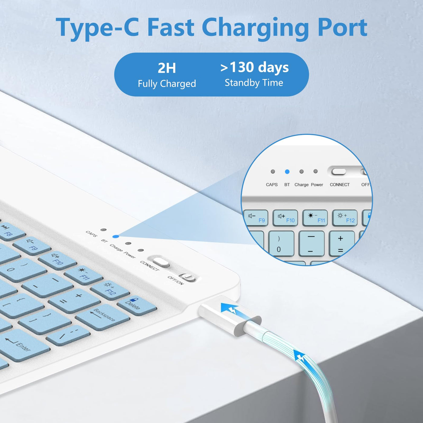 Q: What features does the detachable keyboard offer?A: The detachable keyboard is magnetically attached, ultra-slim, and lightweight, allowing you to easily transform your iPad into a mini laptop. It supports adjustable viewing angles for comfortable typing and usage.