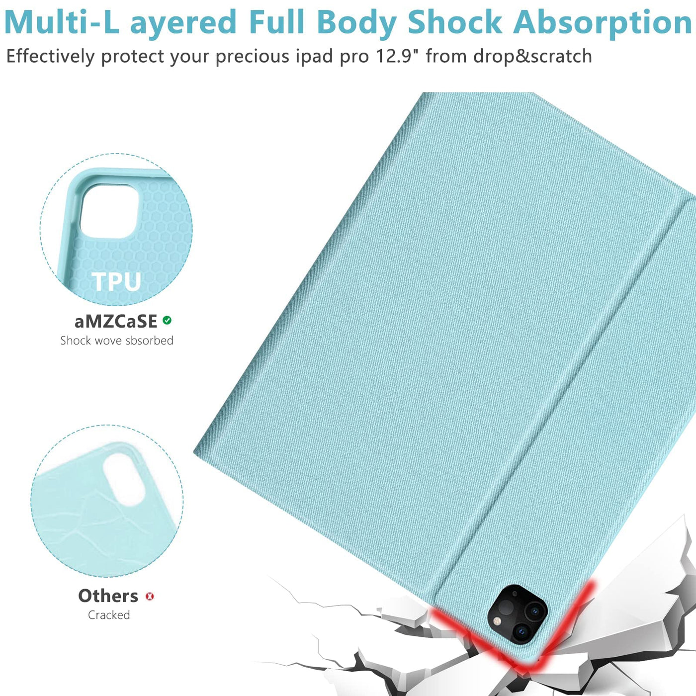Amzcase For Ipad Air 13 Inch M2 Pro 12.9 Case With Keyboard Fit For Ipad Pro 2022 6Th/2021 5Th Gen,Bluetooth Wireless Magnetic D