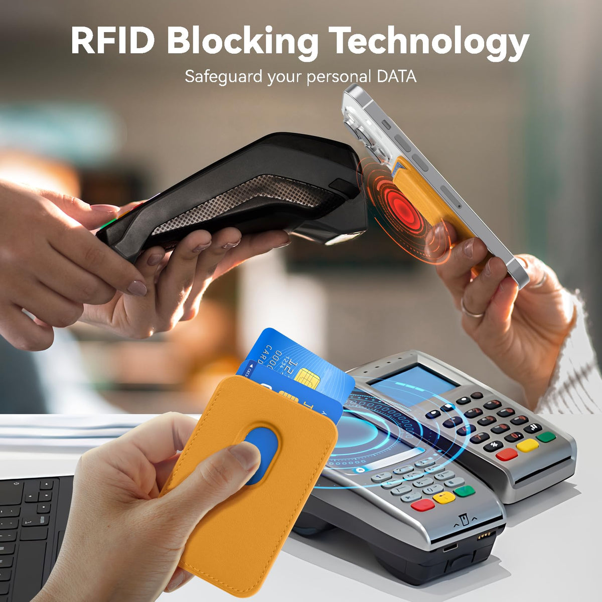 Amzone Magnetic Magsafe Wallet Cell Phone Card Holder For Iphone 15 Series, Stronger Magnetic Rfid Leather Phone Wallet Stick On