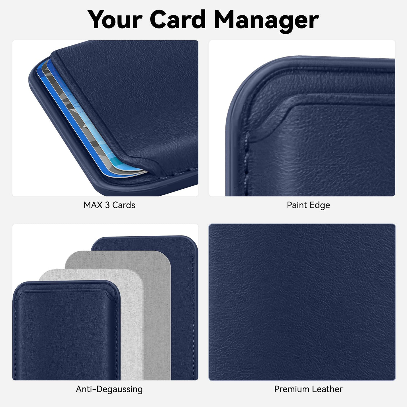 Amzone Magnetic Wallet Cell Phone Card Sleeves For Phone Case With Mag-Safe, Stronger Magnetic Rfid Leather Phone Wallet Stick On Series Of Iphone 15/14/13/12, Indigo Blue