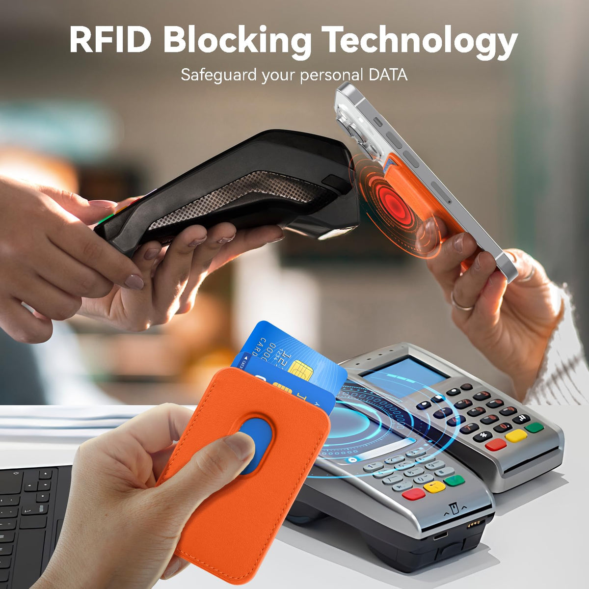 Amzone Magsafe Cell Phone Card Holder For Iphone 15 Series, Stronger Magnetic Rfid Leather Phone Wallet Stick On Series Of Iphon
