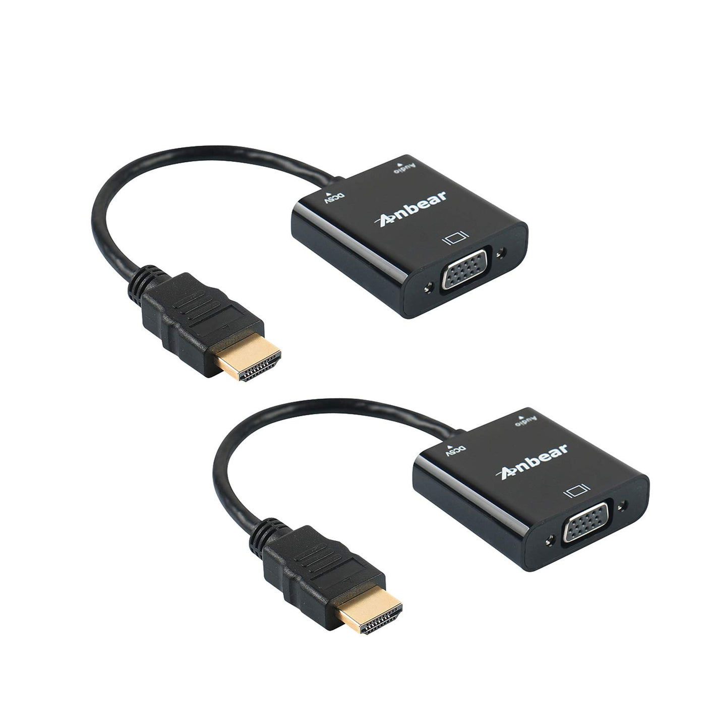 Anbear Hdmi To Vga With Audio, Gold-Plated Hdmi To Vga Adapter 2 Pack (Male To Female) Compatible For Computer, Desktop, Laptop,