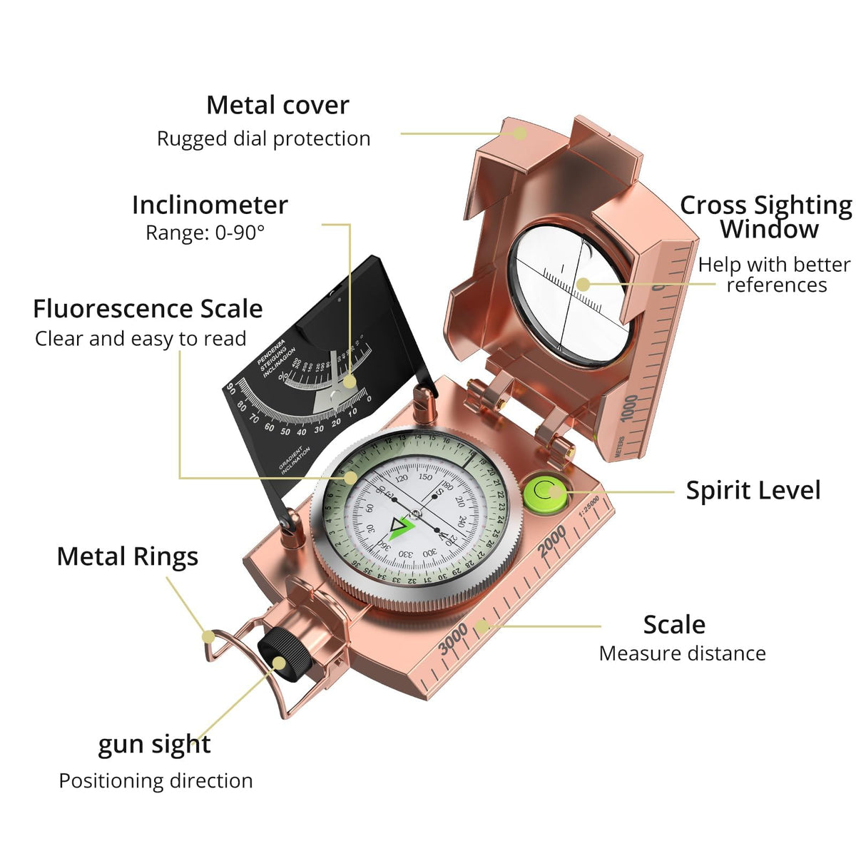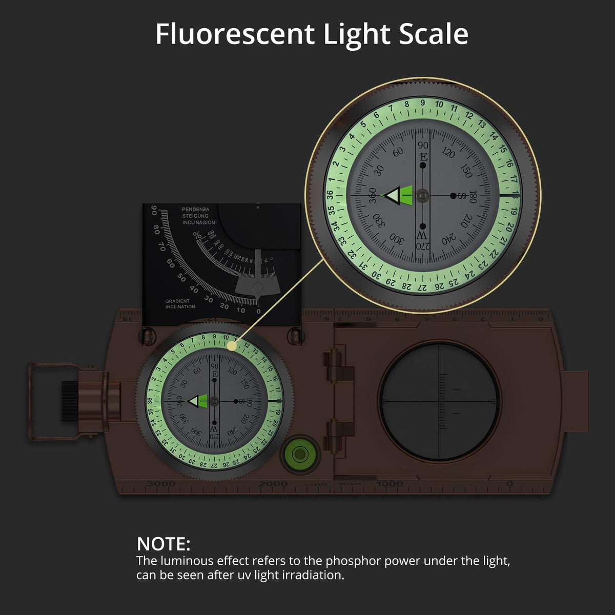 Anbte Hiking Compass, Ip65 Waterproof Metal Compass With Sighting Clinometer, Compass Hiking Survival With Carry Bag Multifuncti