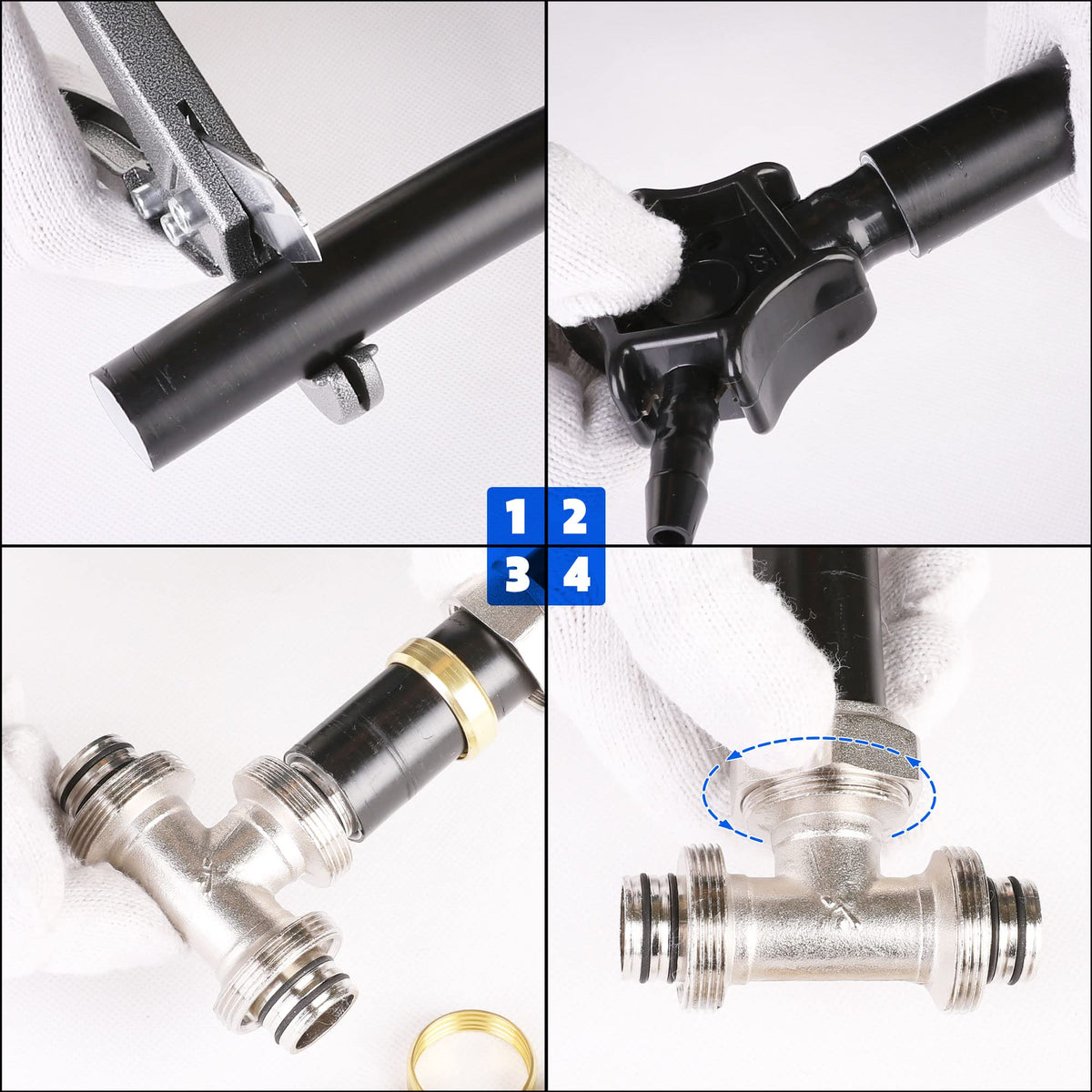 Q: How do I install the ANCIMOON 3/4’’ Tee Air Piping Fittings?A: Installation is easy: bevel the inside of the tubing, remove nuts and split rings, push the fitting onto the tubing, and tighten the nut securely with a wrench.