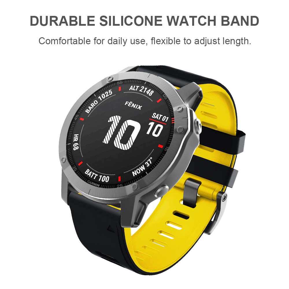 Ancool Fenix 6X Pro Watch Band/Fenix 5X Watch Band/Fenix 7X Watch Band 26Mm Silicone Watch Band For Fenix 6X/5X Plus/7X(Black Ye