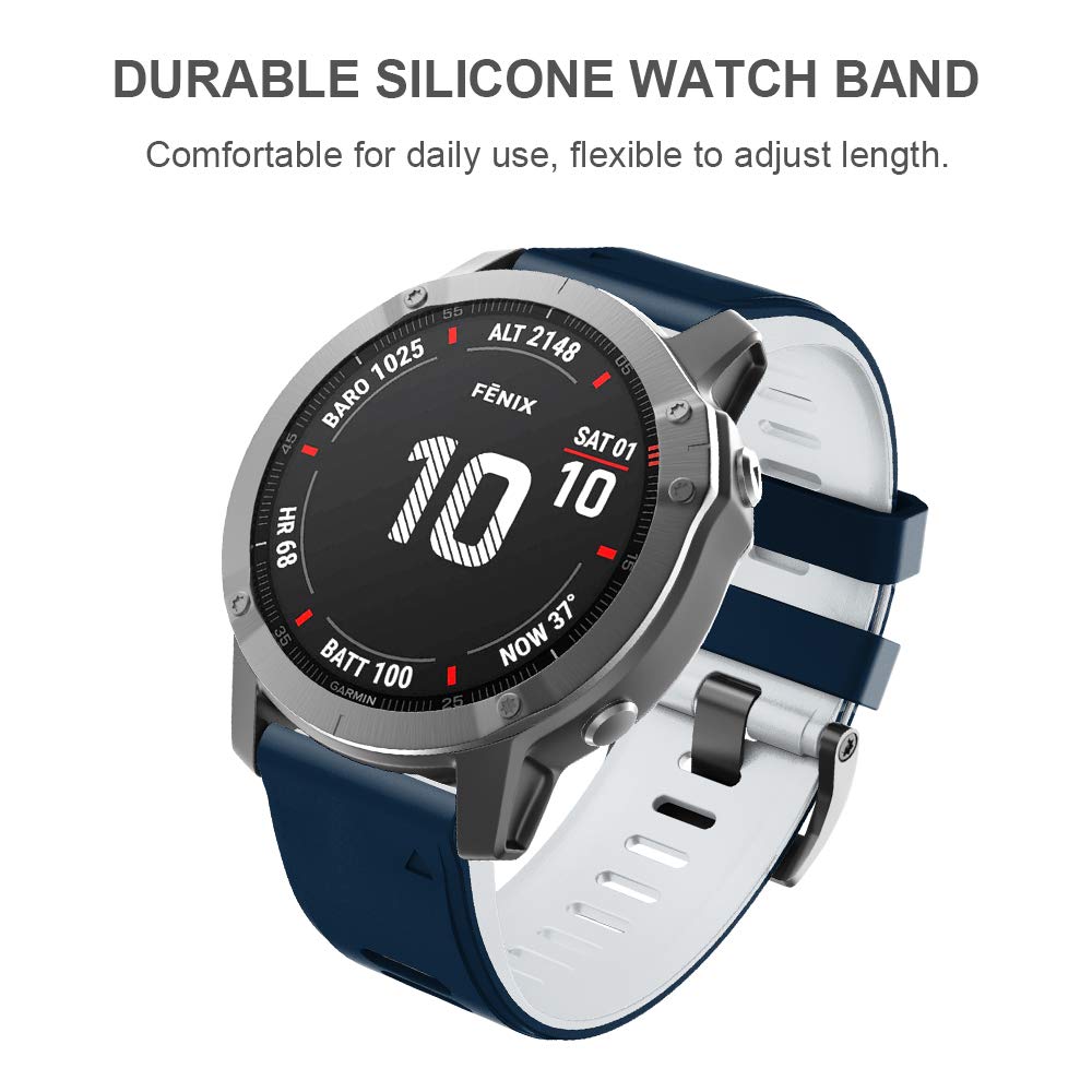 Ancool Fenix 6X Pro Watch Band/Fenix 5X Watch Band/Fenix 7X Watch Band 26Mm Silicone Watch Band For Fenix 6X/5X Plus/7X(Dark Blu