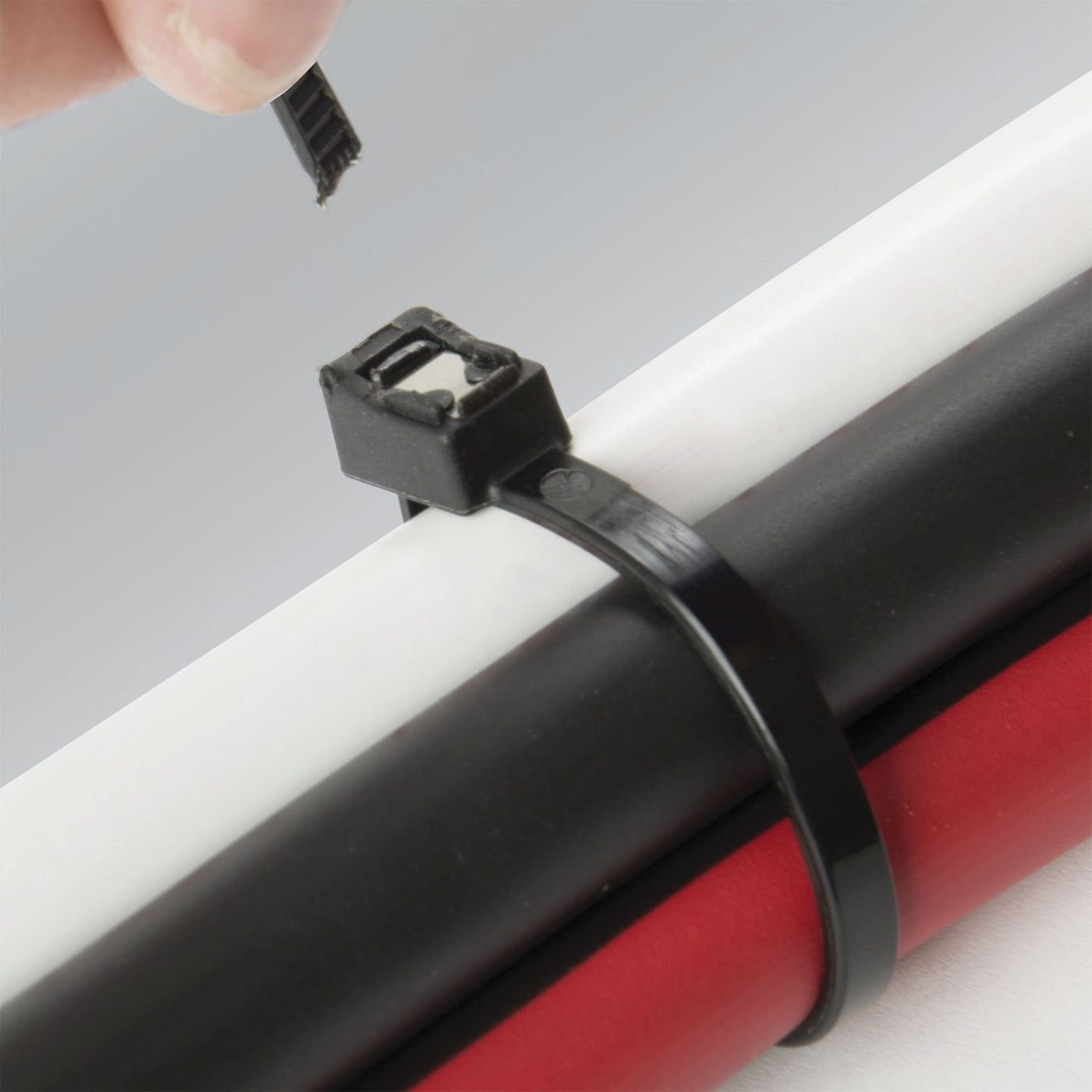 Save Time And Frustration Using The Latest Innovation From Ancor, A Self-Cutting Cable Tie. Simply Lock And Twist To Finish The Job, With No Need For Additional Tools! This Leaves A Clean Cut, Which Improves Appearance And Eliminates The Sharp Tail While Maintaining A 50 Pound Tensile Strength.