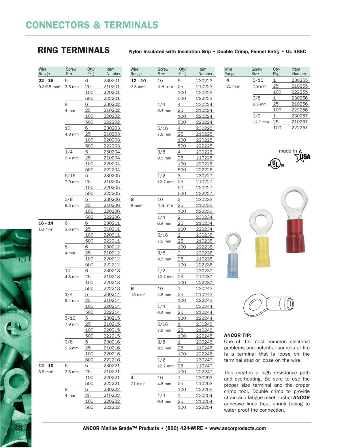 Ancor 222235 Marine Grade Electrical Nylon Insulated Double Crip Funnel Entry Ring Terminals With Insulation Grip (8-Gauge, Size,WBHDWB000NI1H7O