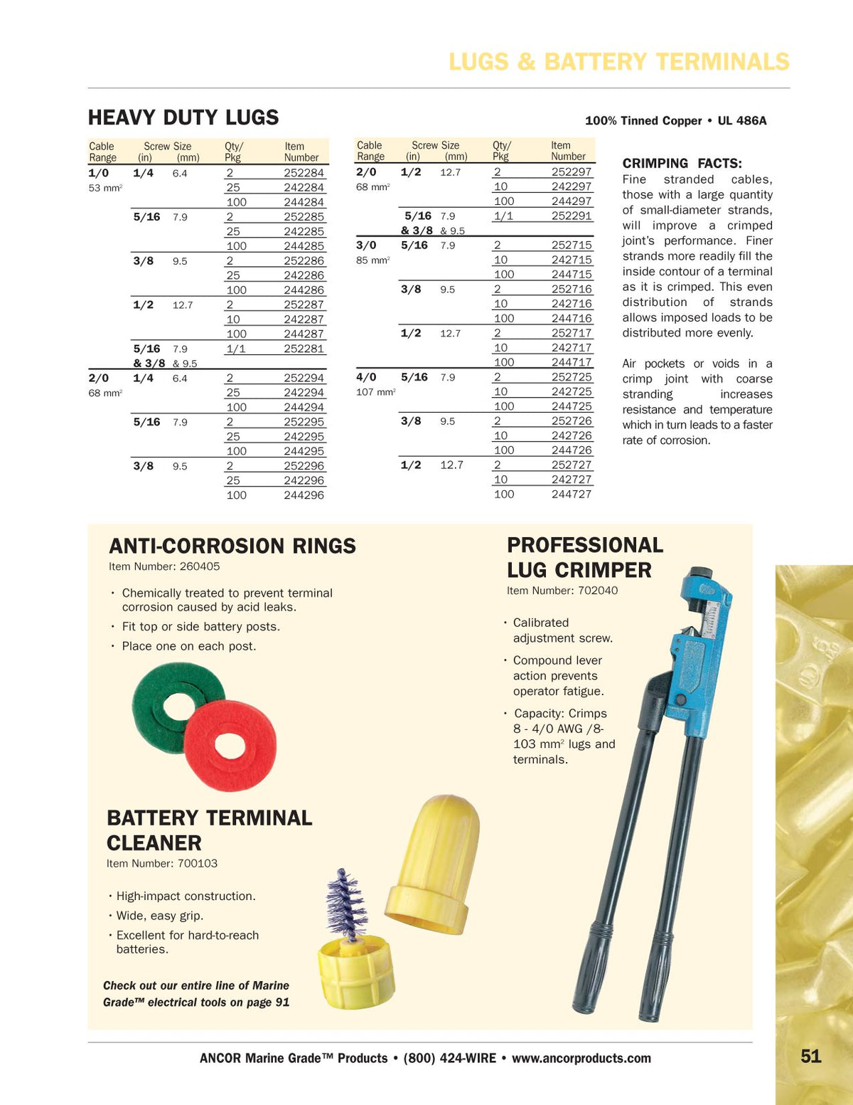 Ancor 244255 Marine Grade Electrical Heavy Duty Tinned Copper Lugs (4-Gauge, Size 5/16 Screw, 100-Pack),WBHDWB000NI1FO4