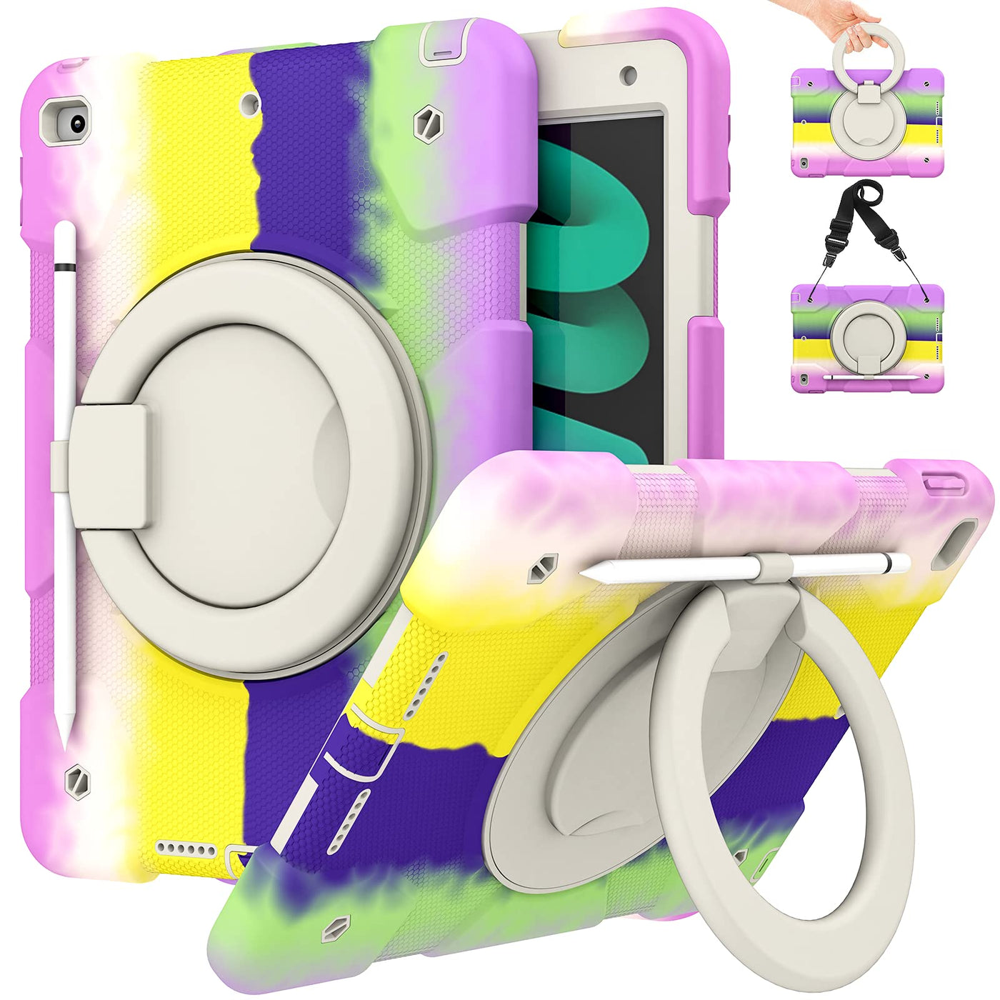 Andnary Ipad 9Th/ 8Th/ 7Th Generation Case 10.2 Inch With Pencil Holder [360 Rotating Handheld Stand] , Full-Body & Drop-Proof Case For Ipad 10.2 Inch 2021/2020/2019 (Colorful Purple)
