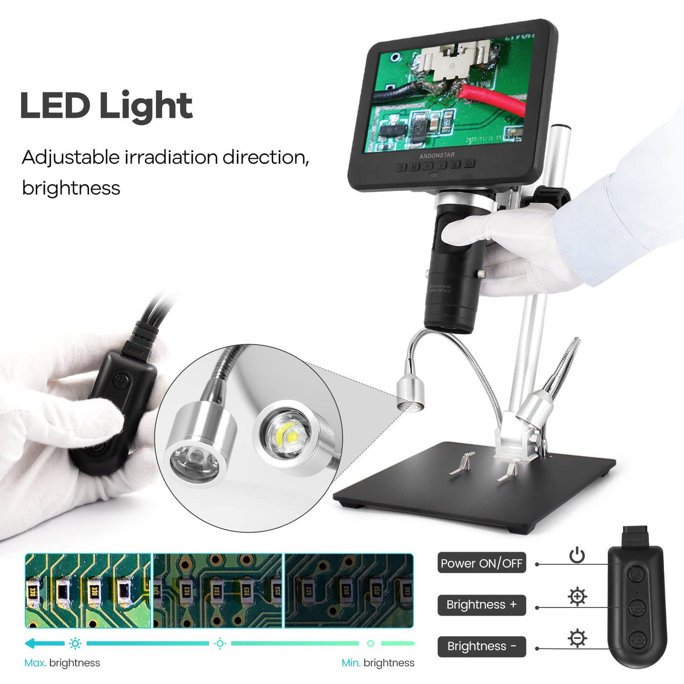 Andonstar Ad246-M Digital Microscope For Adults, 3 Lens Soldering Microscope, 1080P Fhd Video Record, 7 Inch Lcd 500X, Coin Full