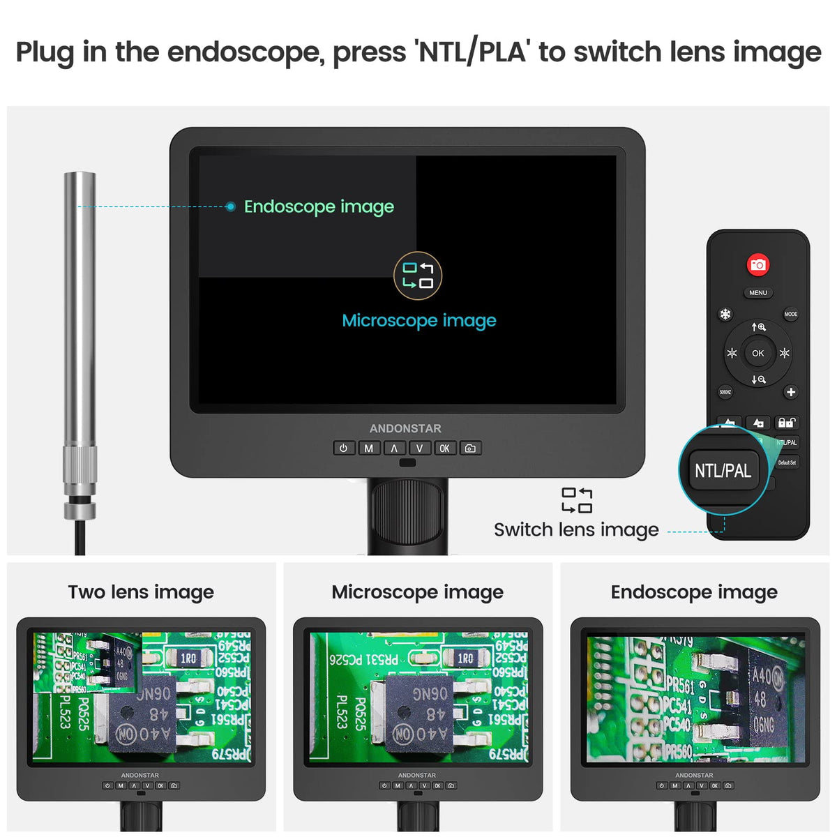 Andonstar Ad249S-M 3 Lens Hdmi Digital Microscope 2000X With Endoscope, 2160P Uhd Video Record 10.1 Inch Lcd Microscope, Soldering Electronic Microscope, Coin Microscope, Biological Microscope Kit With 32G Card, Windows Compatible