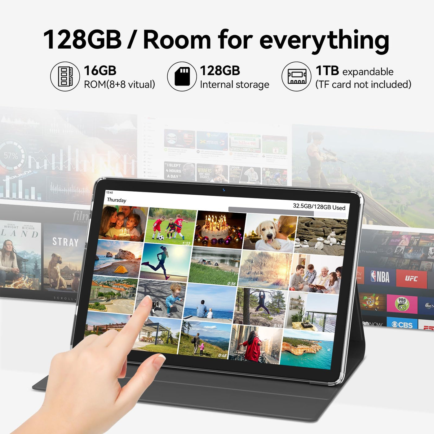 Android Tablet 10 Inch, 2024 Newest Android 13 Tablet, 128Gb Storage+16Gb Ram (8+8Virtual), Octa Core Processor, 5G Wifi Tablet,