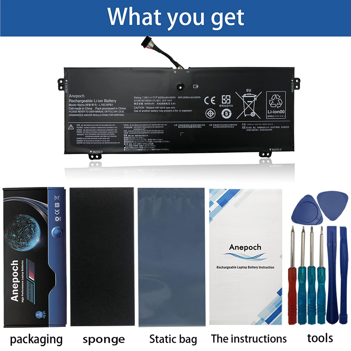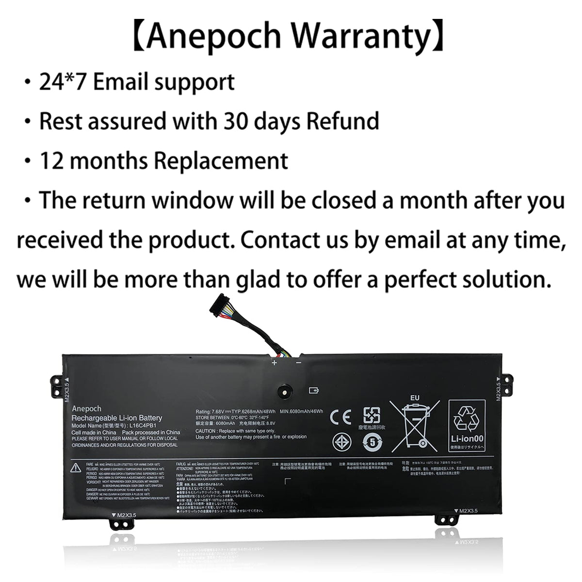 Q: What is the capacity and voltage of the Anepoch L16C4PB1 battery?A: The Anepoch L16C4PB1 battery has a capacity of 48Wh and a voltage of 7.68V, providing reliable power for your Lenovo Yoga laptop.