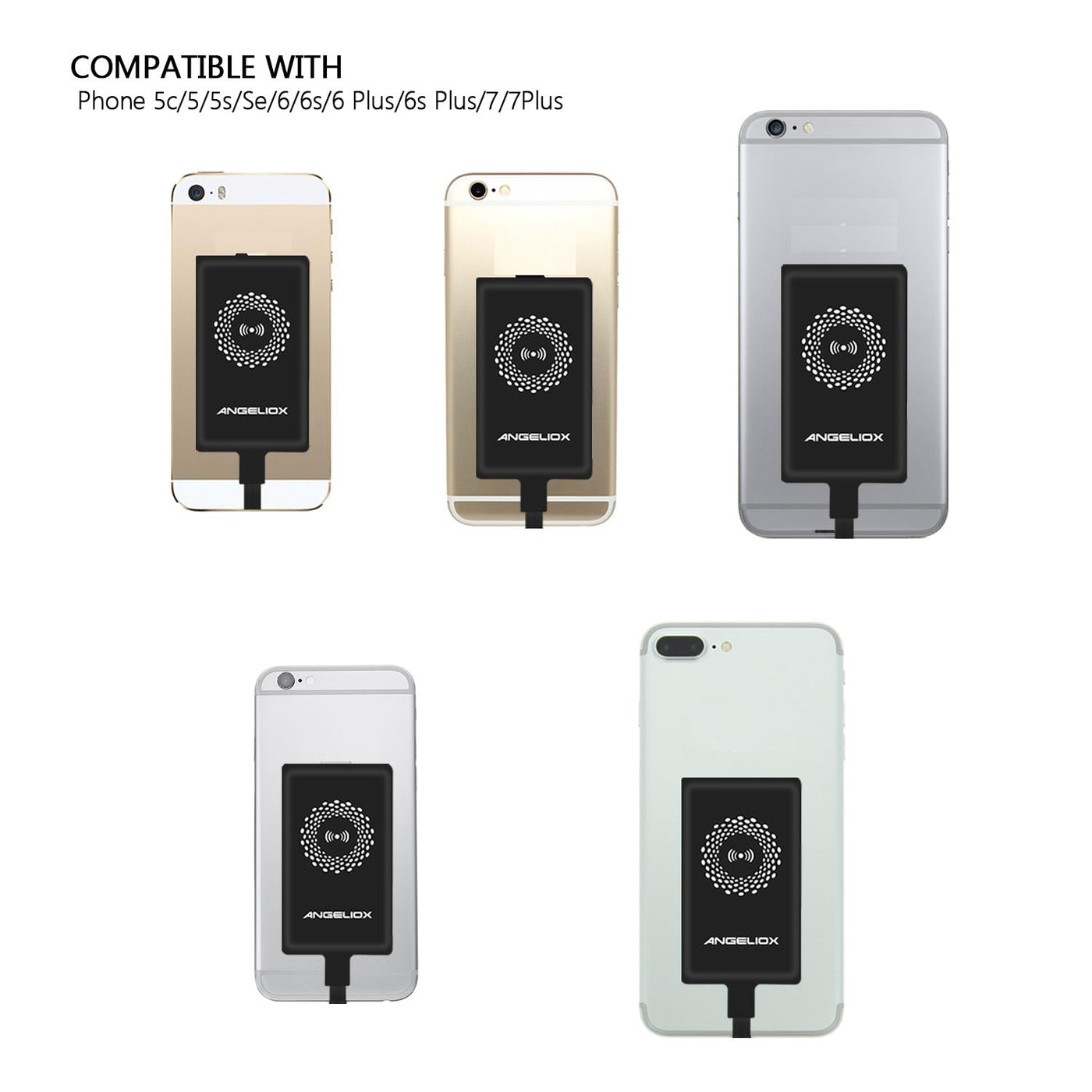 Angeliox Wireless Charger Pad Charging Receiver Compatible With Iphone 7/7 Plus / 6/6 Plus / 6S / 5Se / 5S / 5C / 5(Wireless Cha