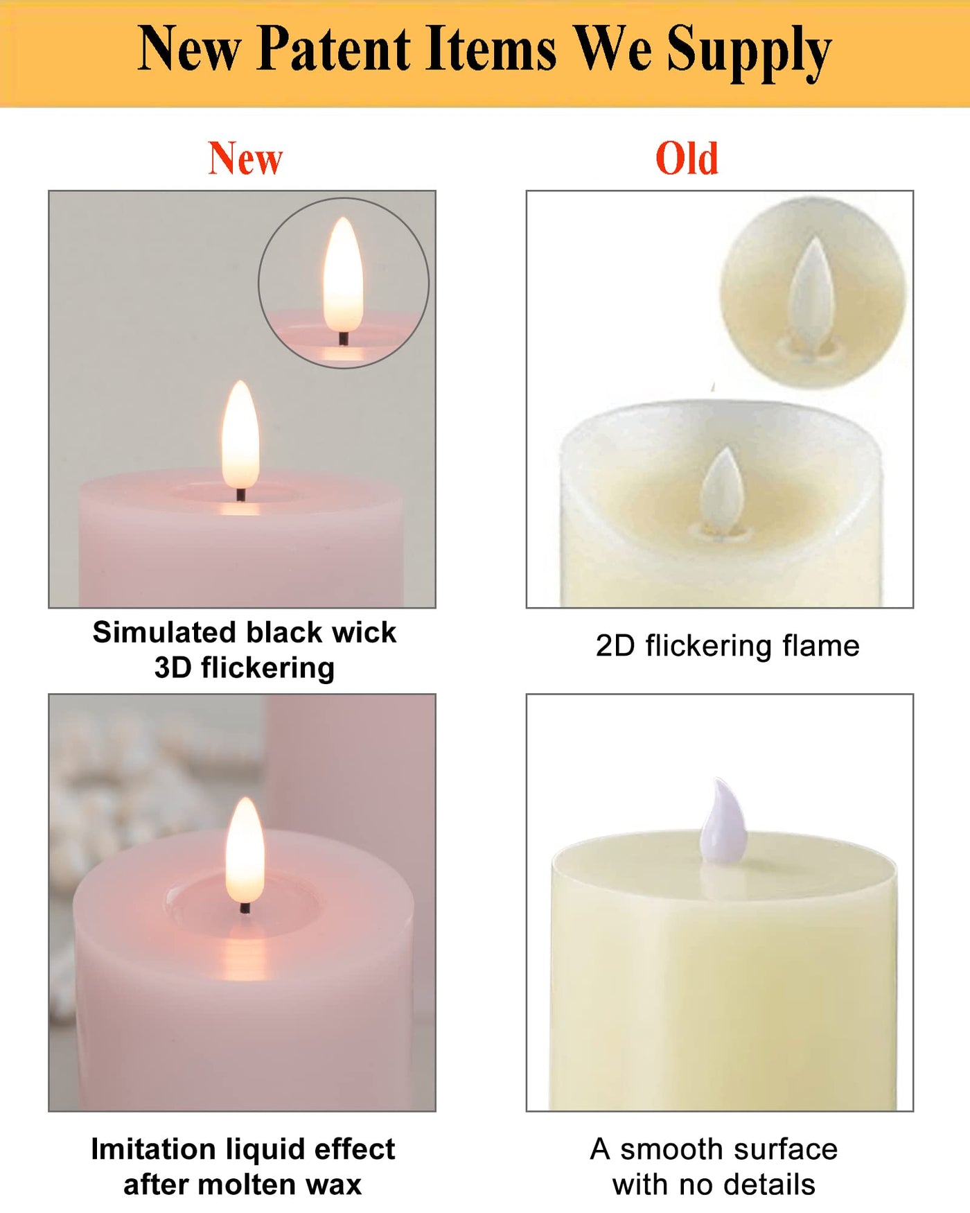 Q: What are the main features of the ANGELLOONG Flickering Flameless Candles?A: The ANGELLOONG Flickering Flameless Candles feature a realistic melting effect with a real-wax exterior, a patented 3D simulation black wick for a lifelike flicker, and a convenient remote control with a timer function. They are battery-operated, ensuring safety without the risk of a burning flame.