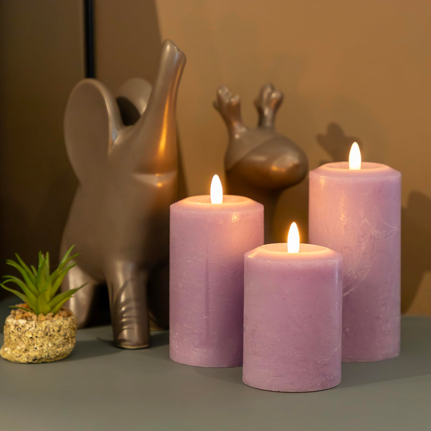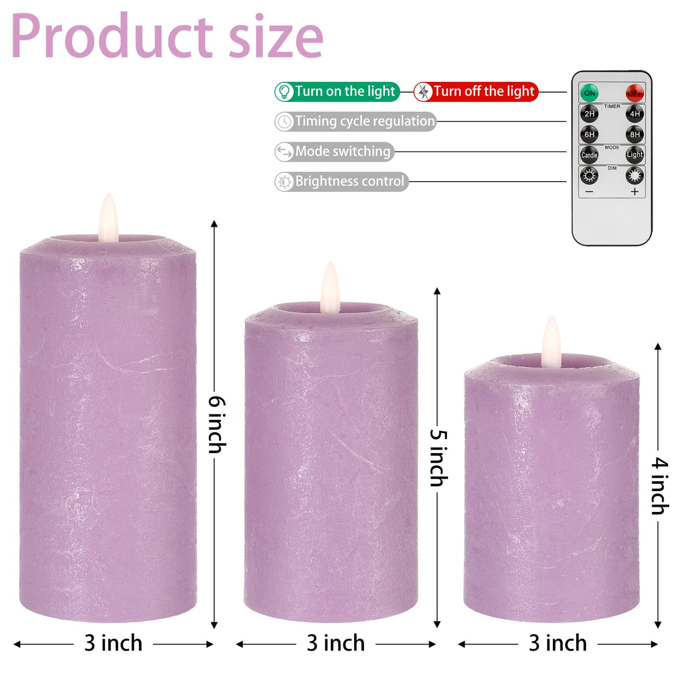 Q: What size batteries do the candles require, and are they included?A: Each candle requires 3 AAA batteries, which are not included with the purchase. This battery-operated feature ensures long-lasting performance without the need for electrical outlets.