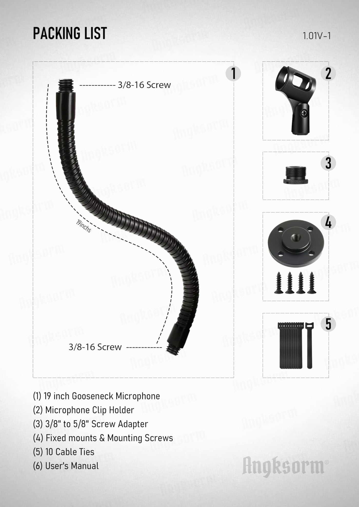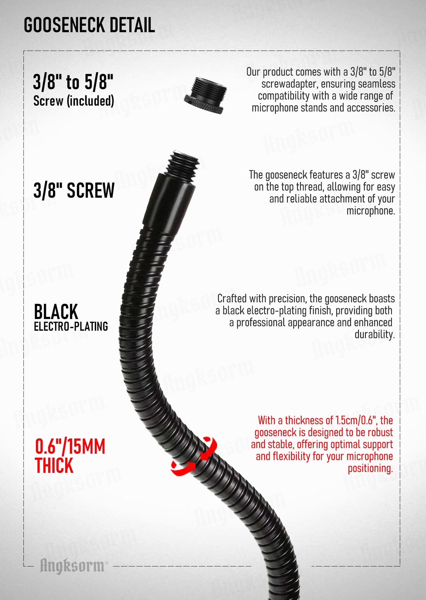 Angksorm Microphone Arm Stand 19'' Flexible Gooseneck Mic Stand Holder With Mounting Base For Table Walls Podium Podcasting Stre