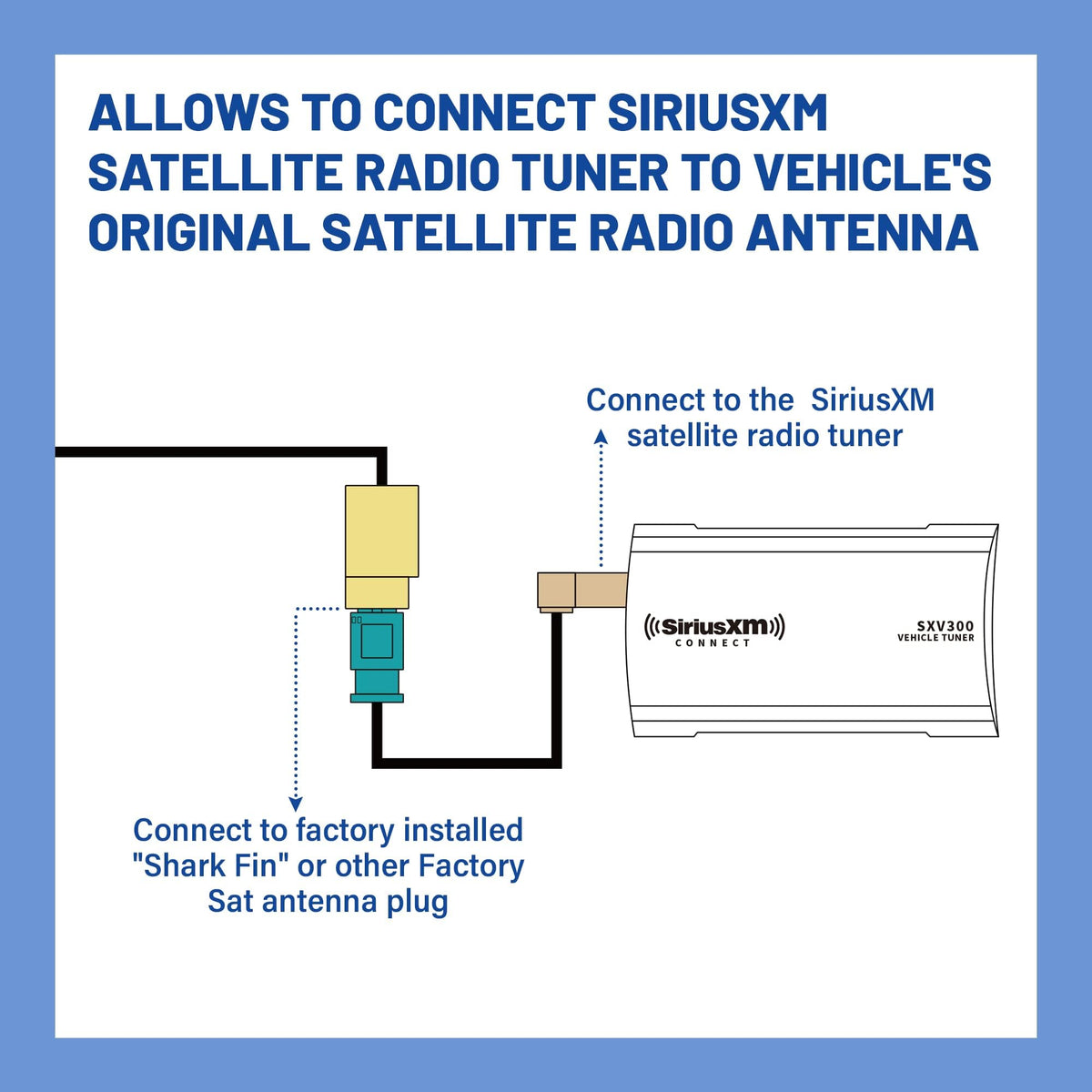 Q: What is the Anina Fakra Z Male to SMB Plug Adapter used for?A: The Anina Fakra Z Male to SMB Plug Adapter is designed to connect your XM satellite radio tuner to your vehicle's original satellite radio antenna, allowing for a seamless installation without the need to run additional antenna cables.