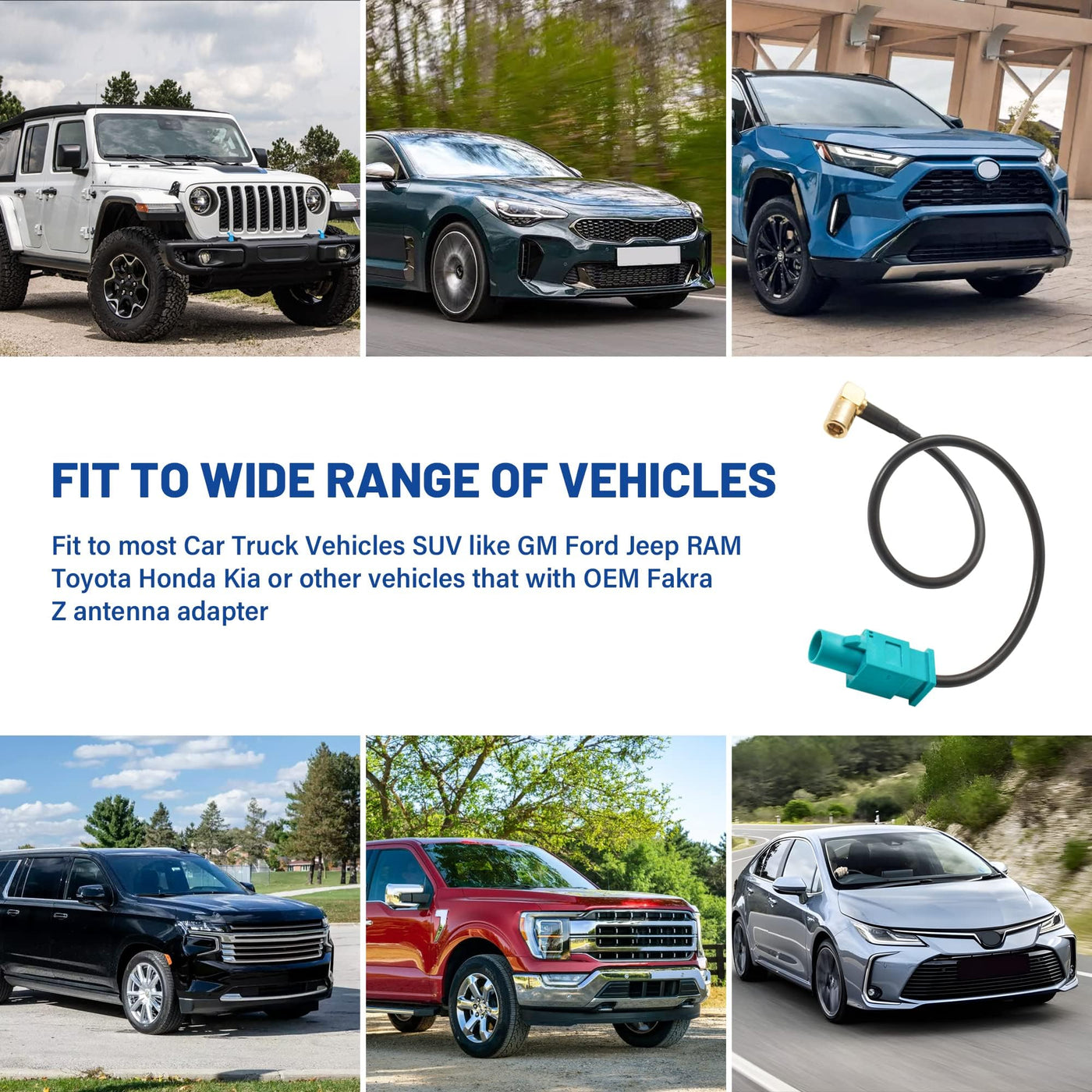 Q: Is this adapter compatible with all vehicles?A: This adapter is compatible with most car and truck vehicles, including GM, Ford, Jeep, Toyota, and Kia models that come with an OEM Fakra Z antenna adapter.