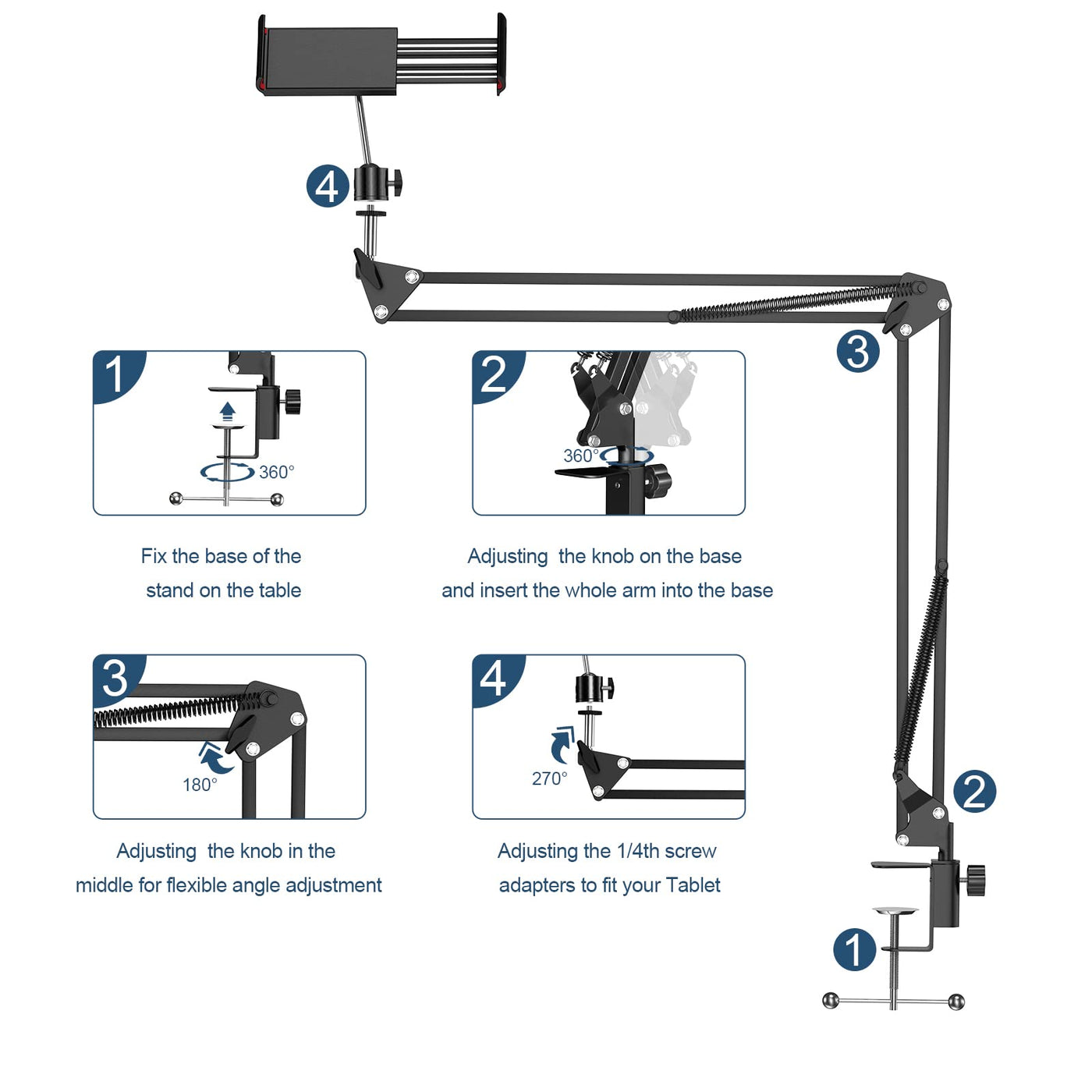 Anivia Overhead Video Stand Phone Holder Articulating Arm Phone Mount,Articulating Phone Stand Tablet Table Top Scissor Boom Arm