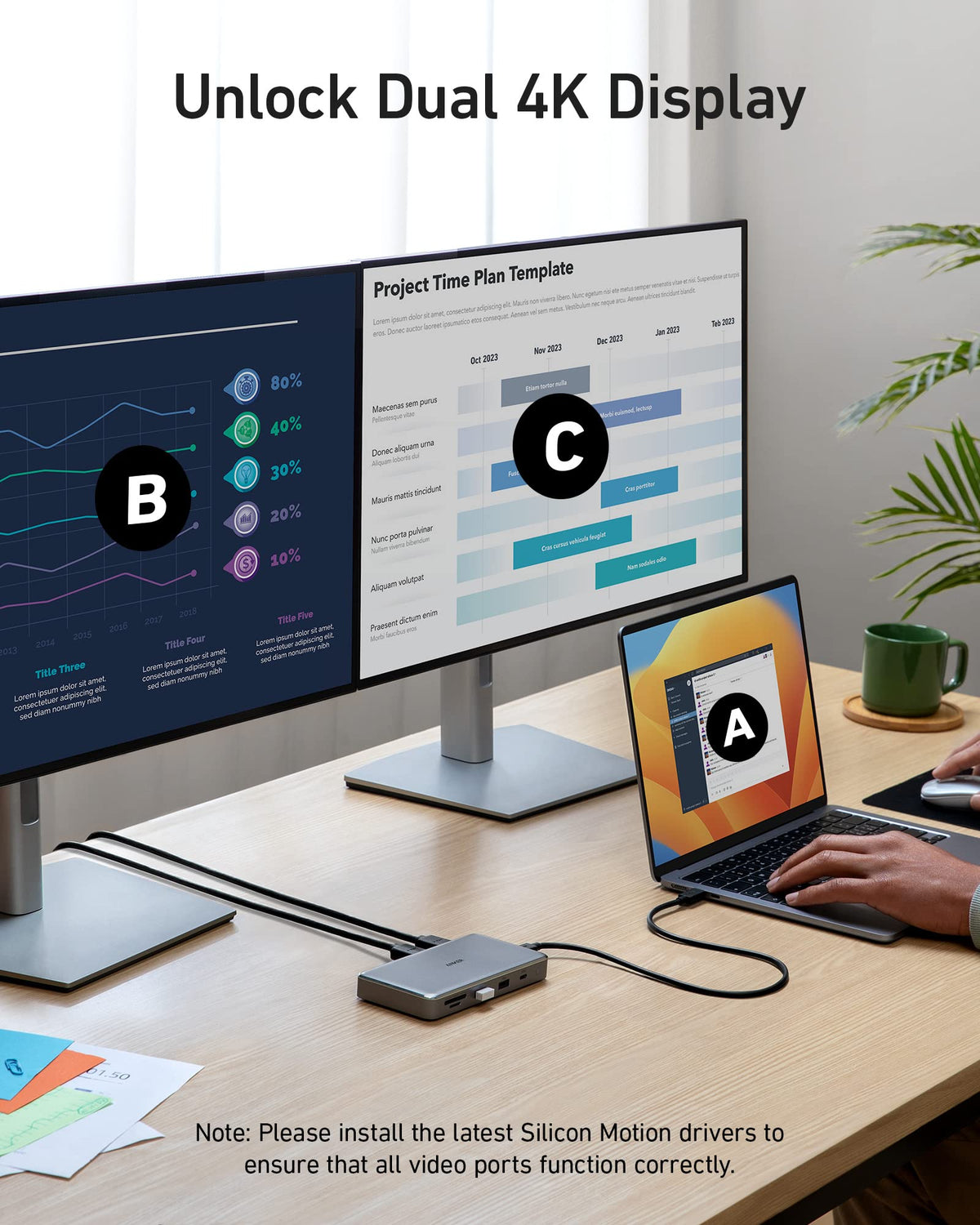 Anker 563 Usb C Hub (10 In 1, Dual 4K Hdmi), Docking Station Dual Monitor, With Max 100W Pd In, 5Gbps Usb Data Ports For Windows