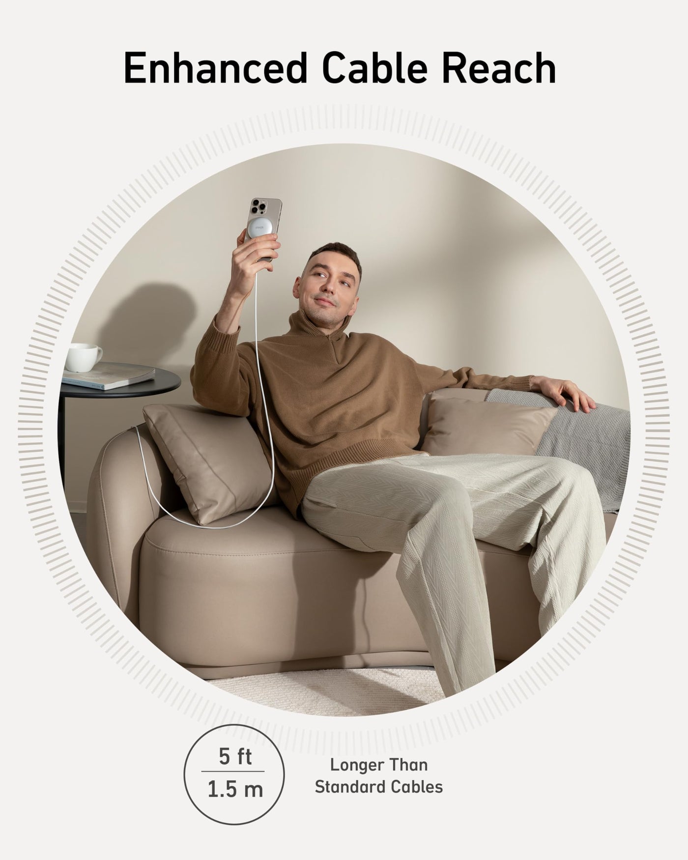 Q: What is the charging speed of the Anker MagSafe Charger Pad?A: The Anker MagSafe Charger Pad provides up to 15W of fast wireless charging for compatible iPhones, thanks to its Qi2 certification. This allows for efficient and rapid charging without the need for cables.